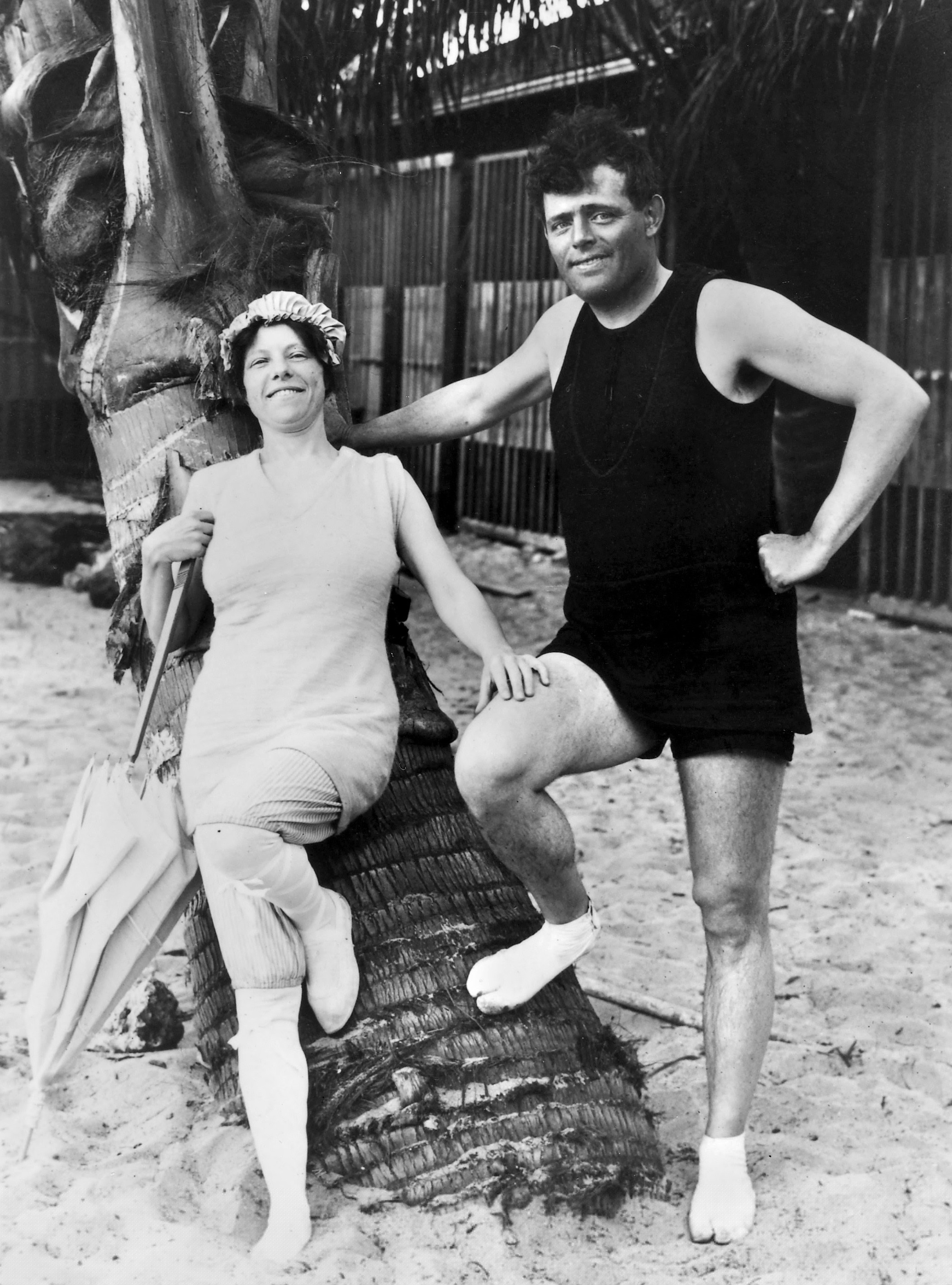 London con su esposa Charmian Kittredge London (1871-1955) en Waikiki Beach, Hawaii, en 1915.
