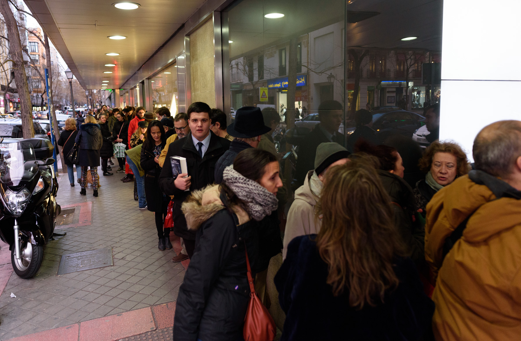 La cola de lectores y seguidores de Federico en la calle del General Díaz Porlier, a bastantes metros de la entrada al centro comercial.
