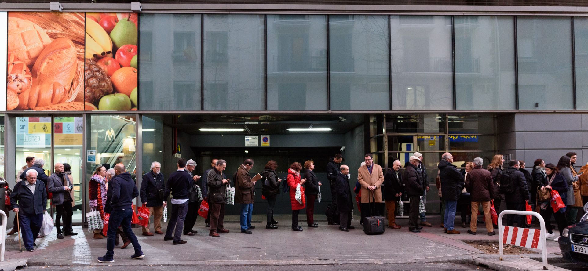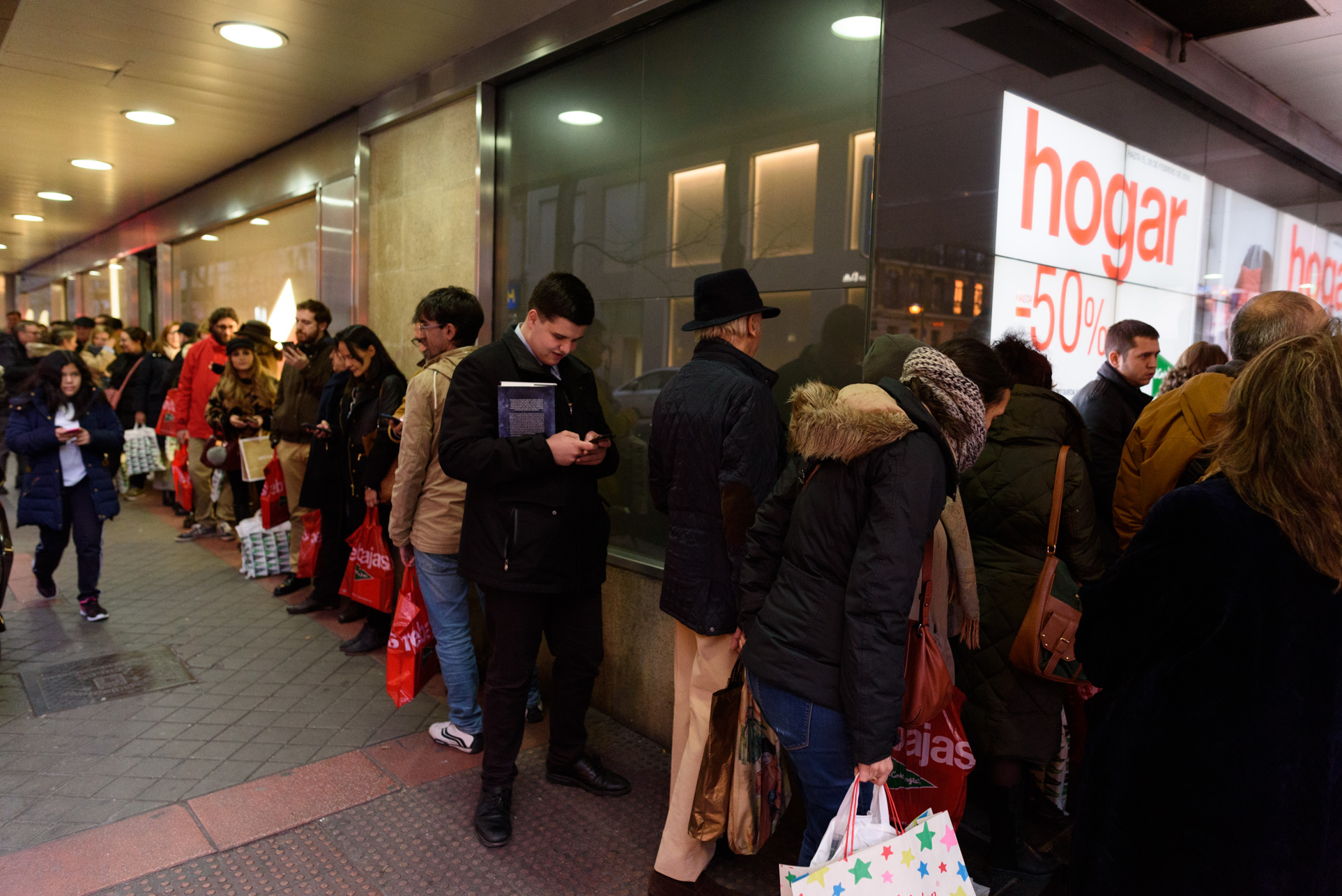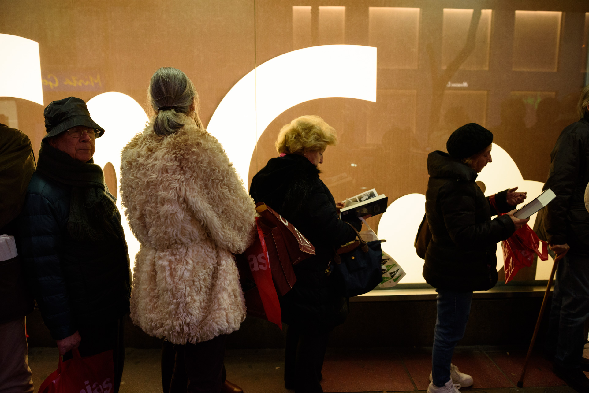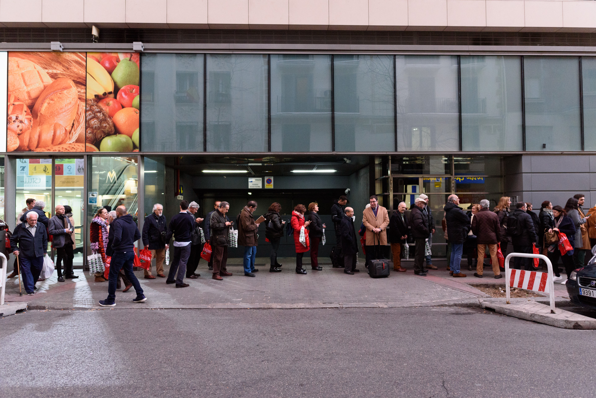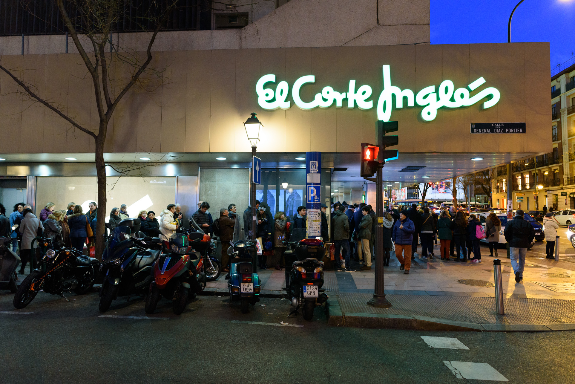 La fachada de El Corte Inglés de Goya, donde cientos de personas han esperado su turno, a pesar del intenso frío, para obtener un libro firmado por Jiménez Losantos.