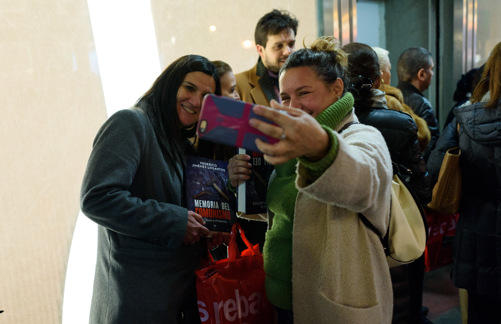 Varios lectores y seguidores de Federico orgullosos de su ejemplar Memoria del Comunismo.