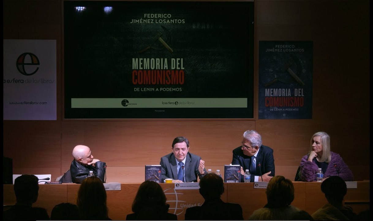 Este lunes se ha presentado en el Auditorio de Unidad Editorial en Madrid el nuevo libro de Federico Jiménez Losantos, Memoria del Comunismo. A pesar del temporal de agua y nieve que azotaba Madrid a esa hora de la tarde los asistentes han colapsado el auditorio. Incluso los pasillos de la sala estaban repletos de personas que han seguido la presentación de pie.