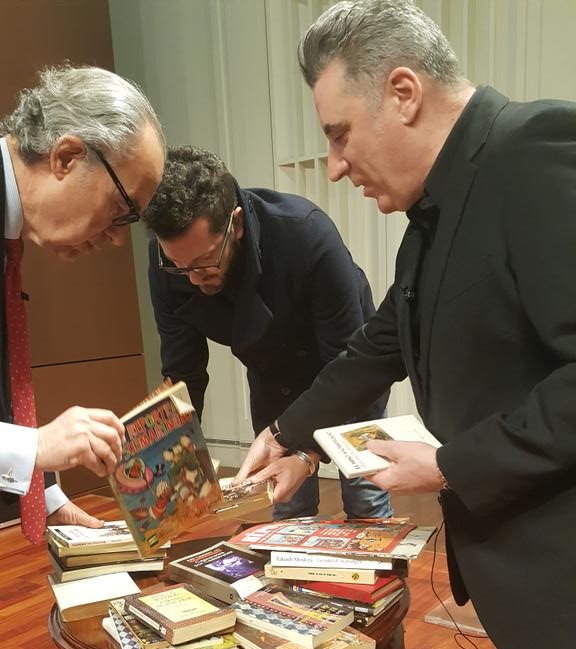 Escoltado por Luis Alberto de Cuenca, se remontó a sus primeras lecturas, como Tintín –"que era Dios"–, los cómics de Dumbo, la revista Strong o los libros de Enid Blyton, que devoró durante una hepatitis C. Se refirió a la colección Escritos y dibujos de Bob Dylan, su "primer contacto con la contracultura, aunque no tenía ni idea de lo que era la contracultura: los leía para ligar".