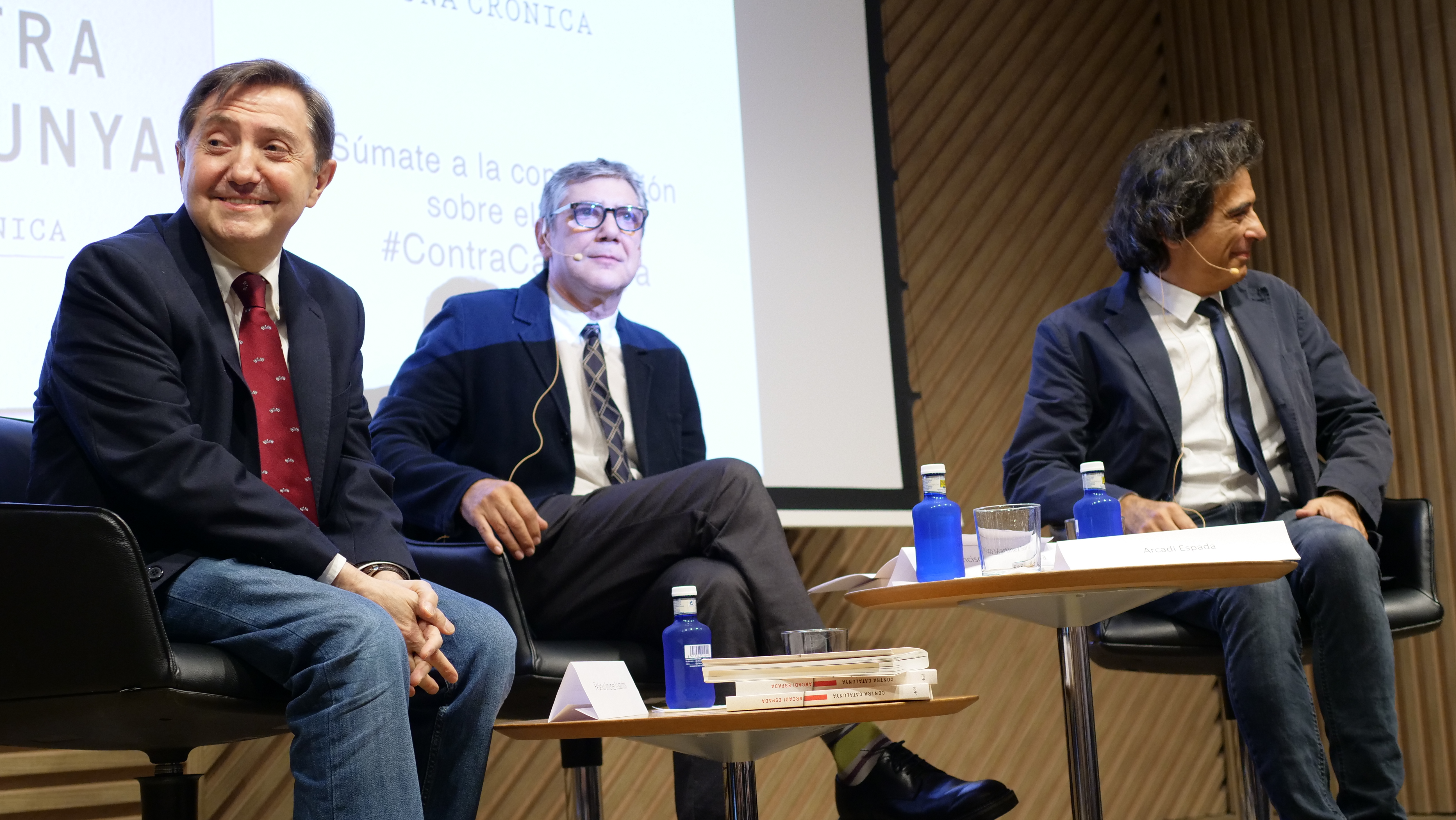 Hace más de dos décadas, el periodista y escritor Arcadi Espada escribió un libro que, lejos de perder vigencia, ha adquirido carácter de presagio pues advertía del declive político que se iba a desencadenar en Cataluña y que se traduce en el desafío separatista: Contra Catalunya (Ariel). Espada presentó este jueves esta reedición necesaria para entender la actual situación política catalana en un acto en el que conversó con Federico Jiménez Losantos y que contó con la presencia de destacados políticos de la escena nacional, como Pablo Casado, y del ámbito cultural, como Mario Vargas Llosa.