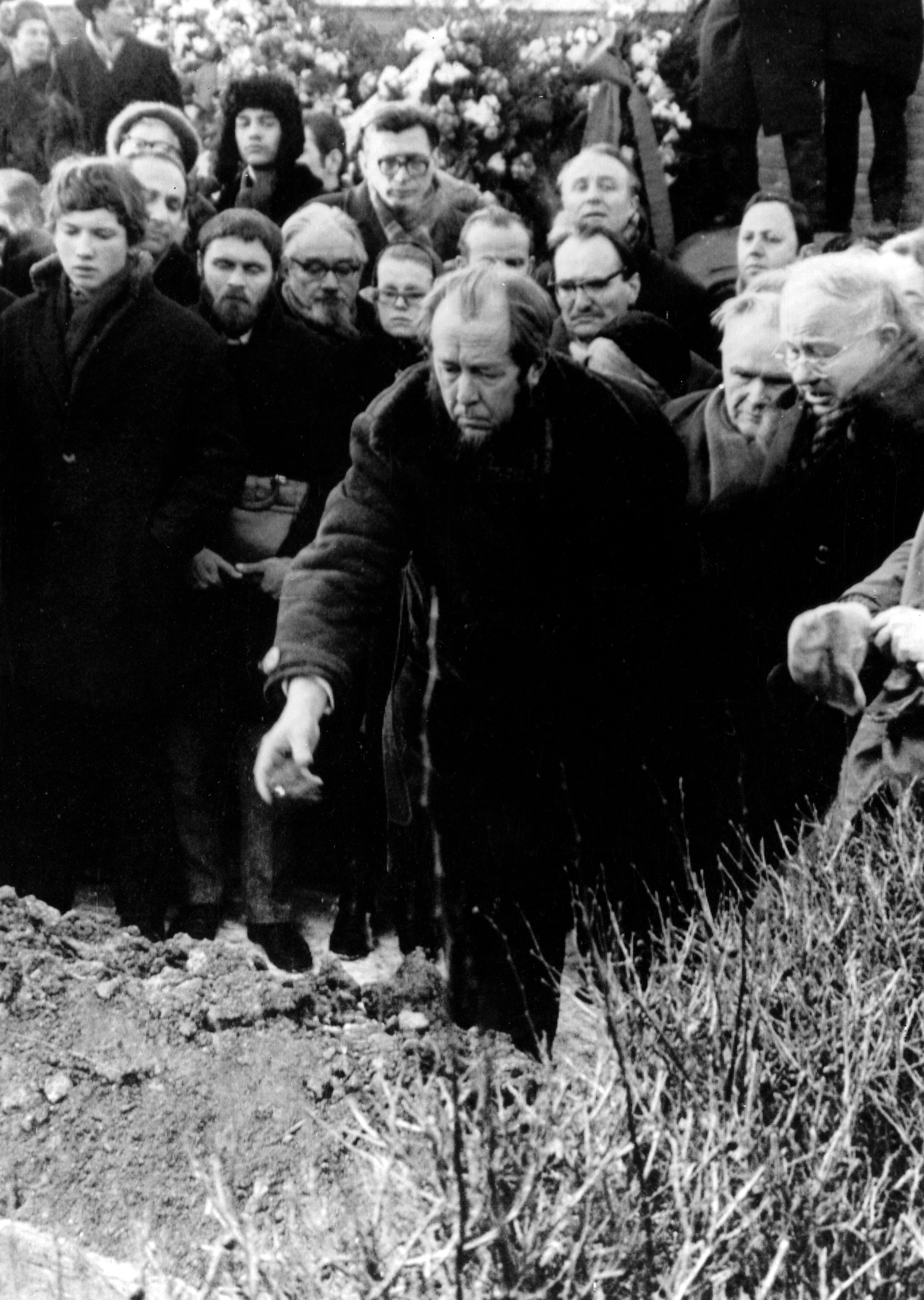 Alexander Solzhenitsyn en el entierro de Alexander Tvardovsky