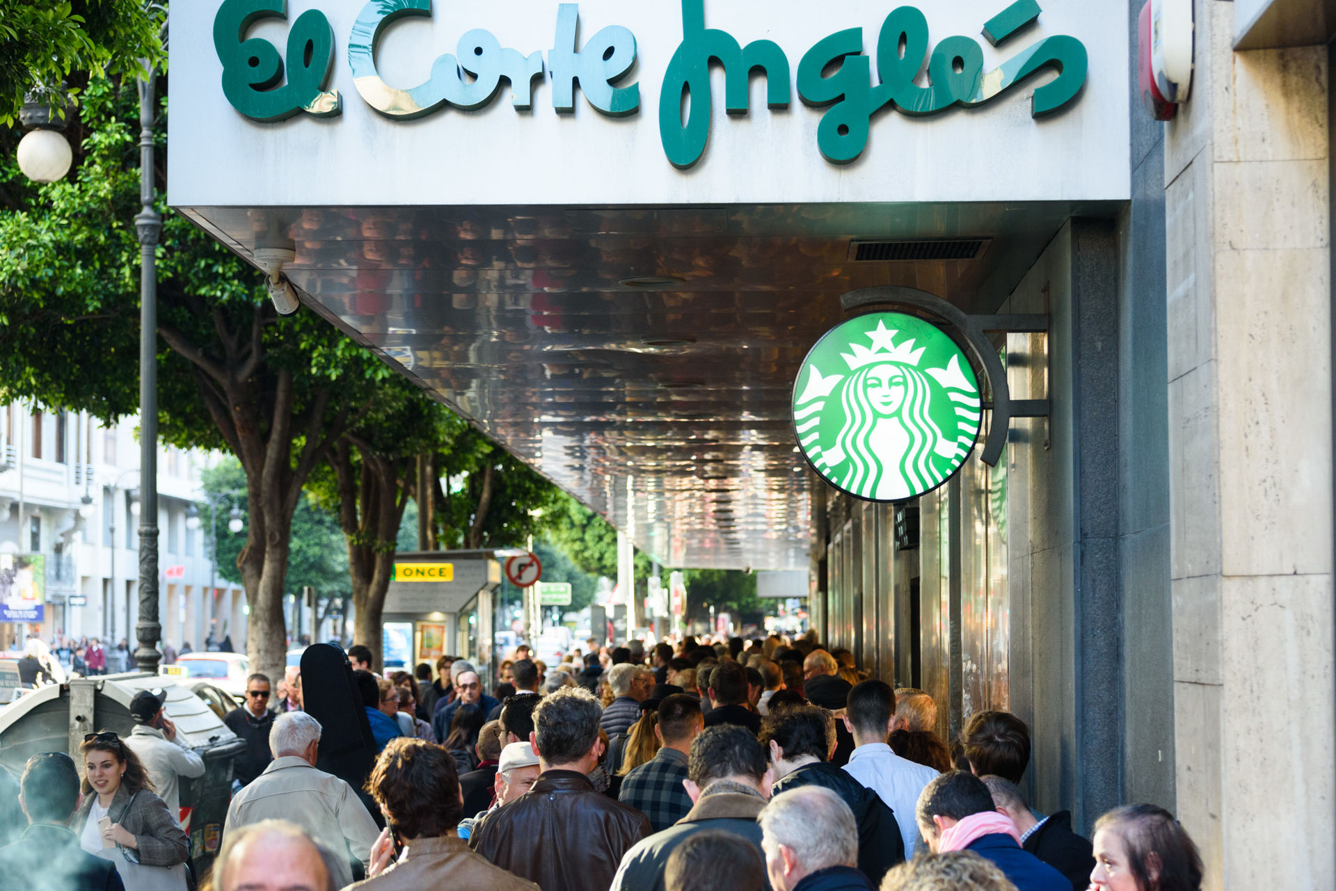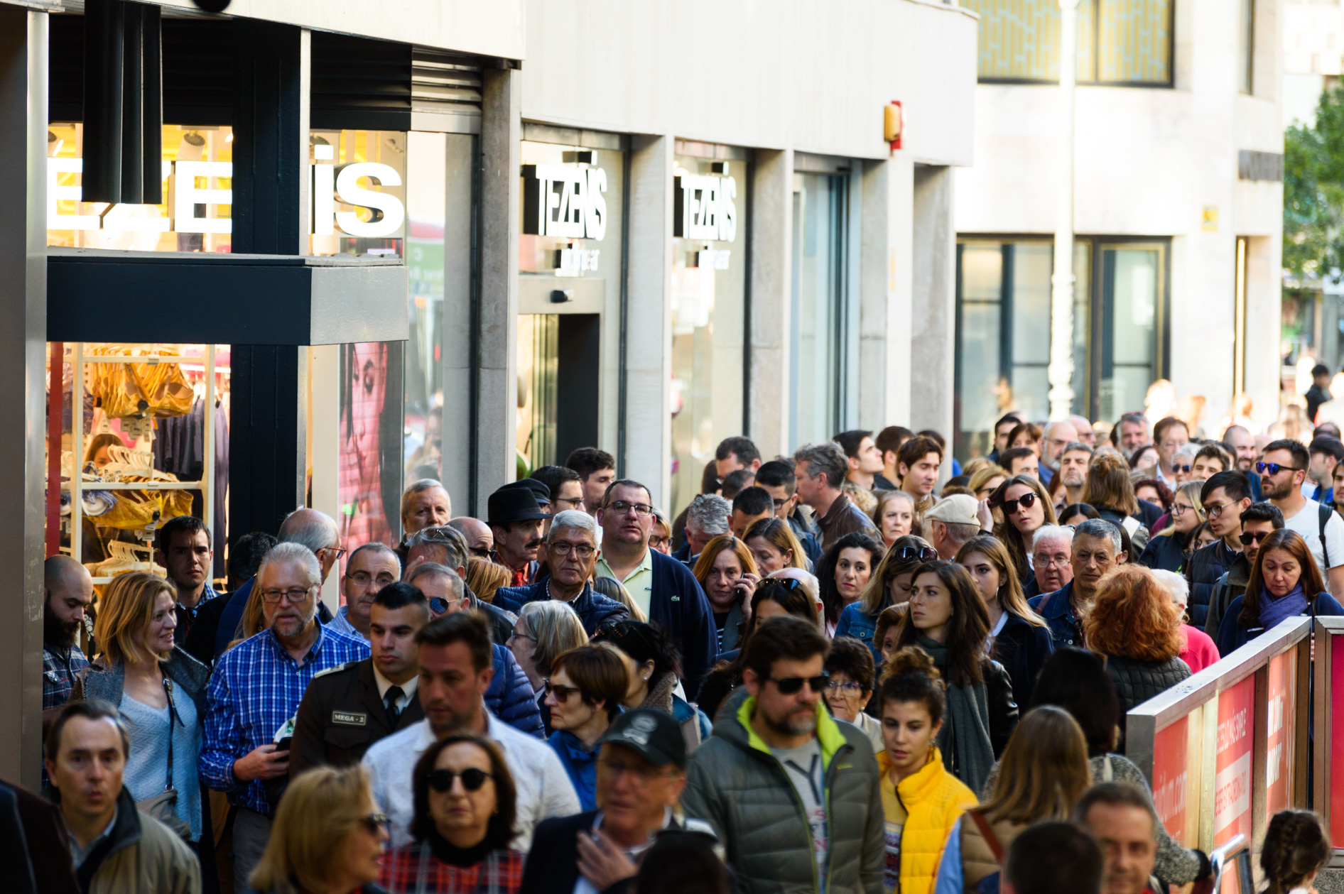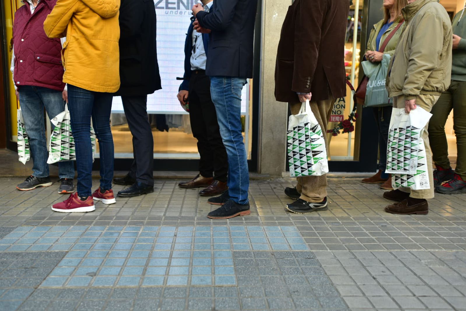 La cola ha colapsado la entrada al Corte Inglés de la valenciana calle Colón.