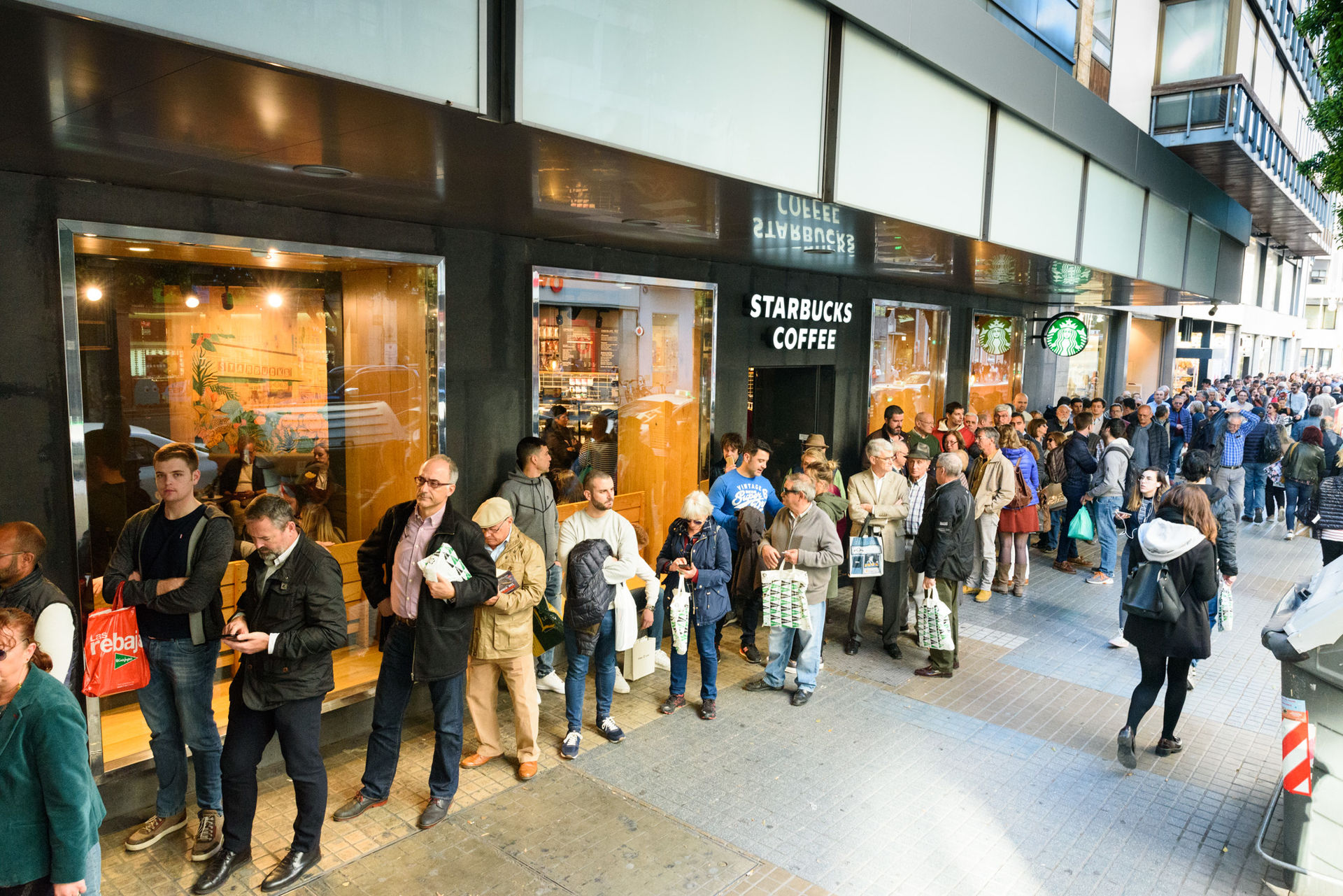 Las personas congregadas en el Corte Inglés de Valencia hacen fotos para inmortalizar el momento.