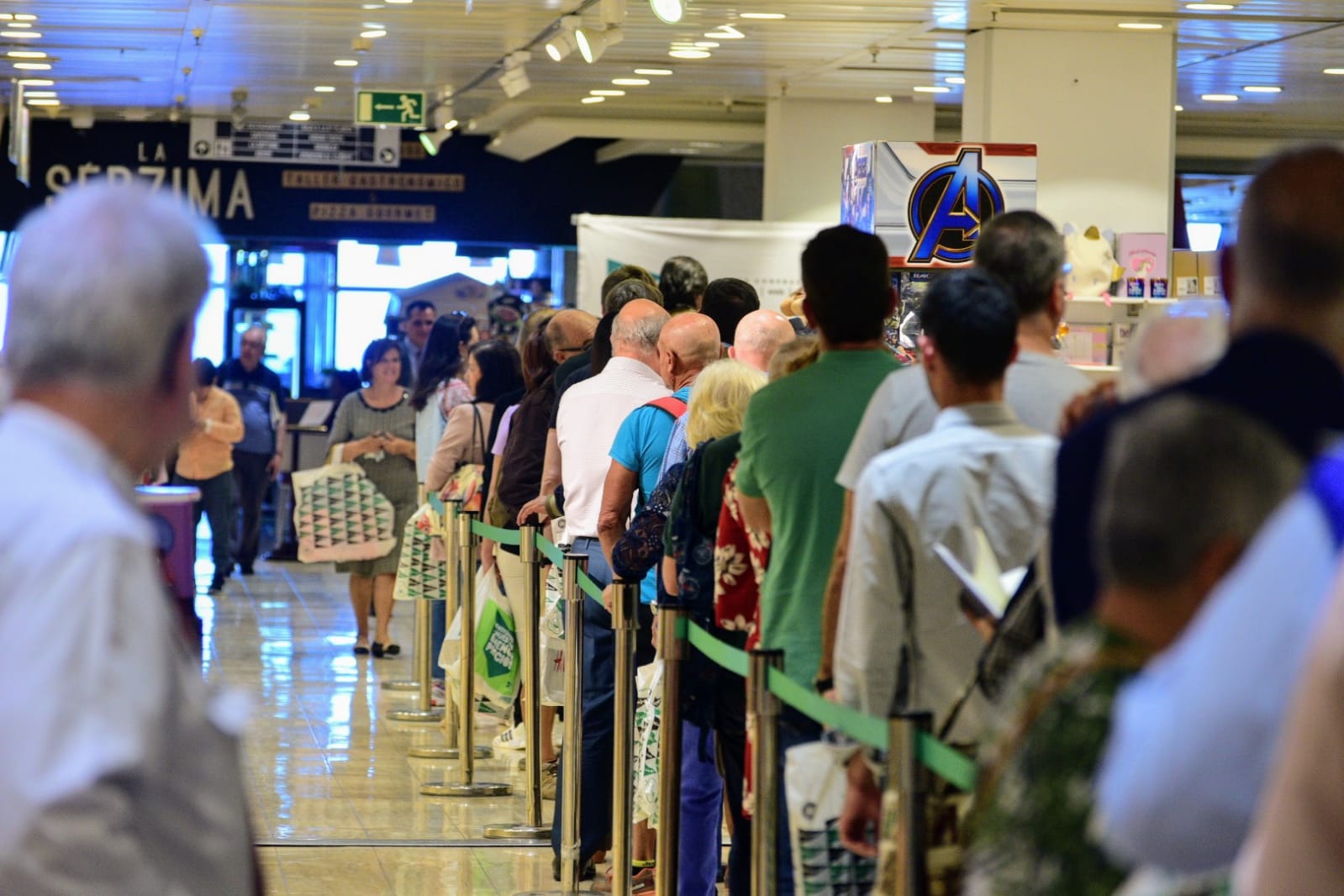 Una perspectiva de la larga cola en el Corte Inglés de Tenerife este jueves por la tarde.