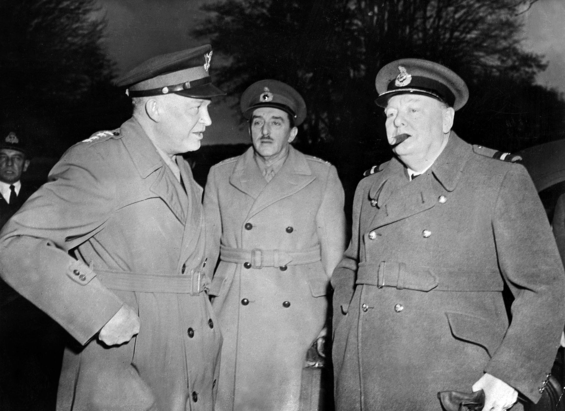 El general Eisenhower junto a Winston Churchill y al mariscal Alan Brooke