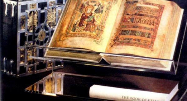 También el Libro de Kells, de finales del siglo VIII, un verdadero icono de Irlanda y motivo de orgullo nacional. Es posible que lo creara una comunidad de monjes en la isla, hoy escocesa, de Iona, si bien recibe el nombre de la abadía de Kells, al noroeste de Dublín, donde se conservó durante siglos. Destaca por sus elaboradísimas ilustraciones y letras ornamentadas, que combinan la iconografía cristiana tradicional con los motivos ondulantes y complejos propios del arte insular. El propio James Joyce se inspiró en este célebre manuscrito iluminado.