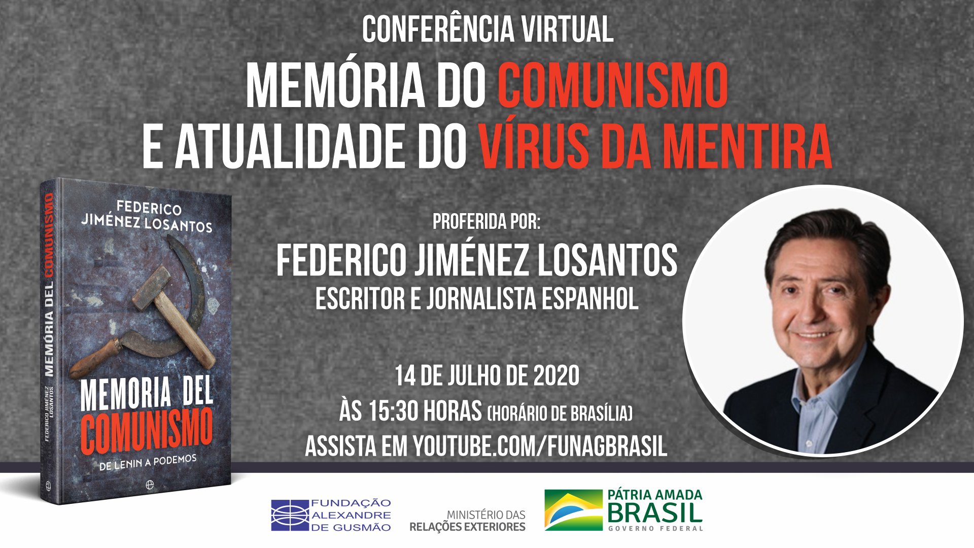 La Fundación Alexandre de Gusmão (Funag) acoge este martes 14 de julio una conferencia con el escritor y presidente de Libertad Digital, Federico Jiménez Losantos titulada "Memoria del comunismo y el virus actual de la mentira". Será a las 15:30 h. (horario de Brasilia), 20:30h. en España.