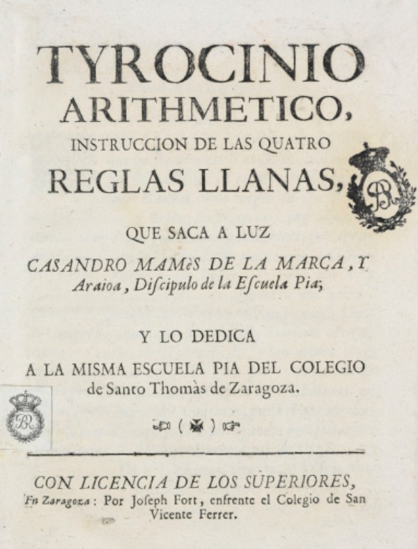 En el siglo XVIII salió publicado Tyrocinio arithmetico, Instrucción de las quatro reglas llanas (Zaragoza: Joseph Fort, 1738), un libro científico firmado por un tal Casandro Mamés de la Marca y Araioa, de Zaragoza, un autor desconocido. Se trataba de un breve manual que venía a revolucionar los métodos de enseñanza de las matemáticas o más bien, proporcionar las instrucciones para el autoaprendizaje. Con una educación restringida a ciertas clases, este libro daba las herramientas –sobre todo a comerciantes– para prosperar y evitar ser engañados en las transacciones diarias. Pero Casandro no era un hombre. En realidad, ese nombre era un anagrama, una combinación de las mismas letras de María Andresa Casamayor de la Coma, la verdadera autora, la primera mujer que escribió un libro de ciencia en español –al menos, que se conserve–.
