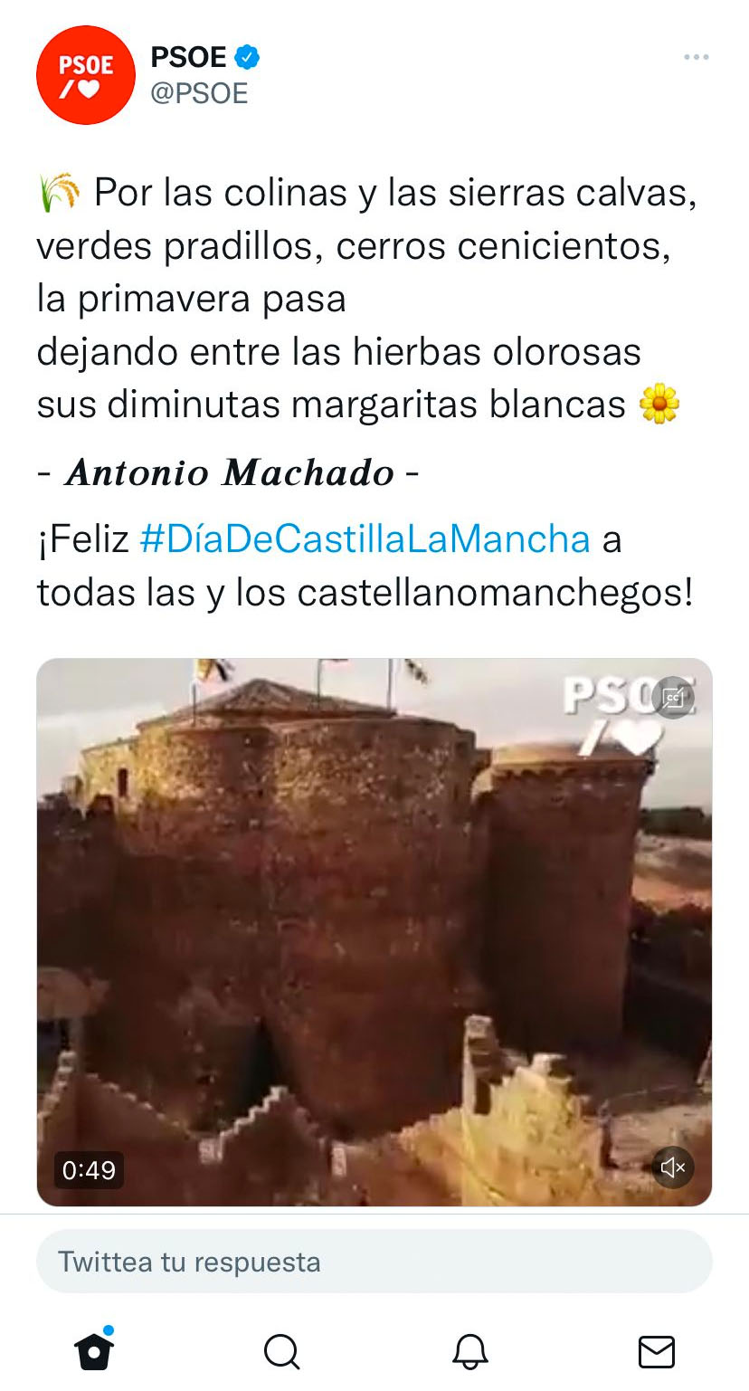 En definitiva, ni el poeta, ni el poema ni el libro tienen otra vinculación con Castilla-La Mancha que el lamentable nivel cultural de los gestores de la cuenta en Twitter del PSOE.