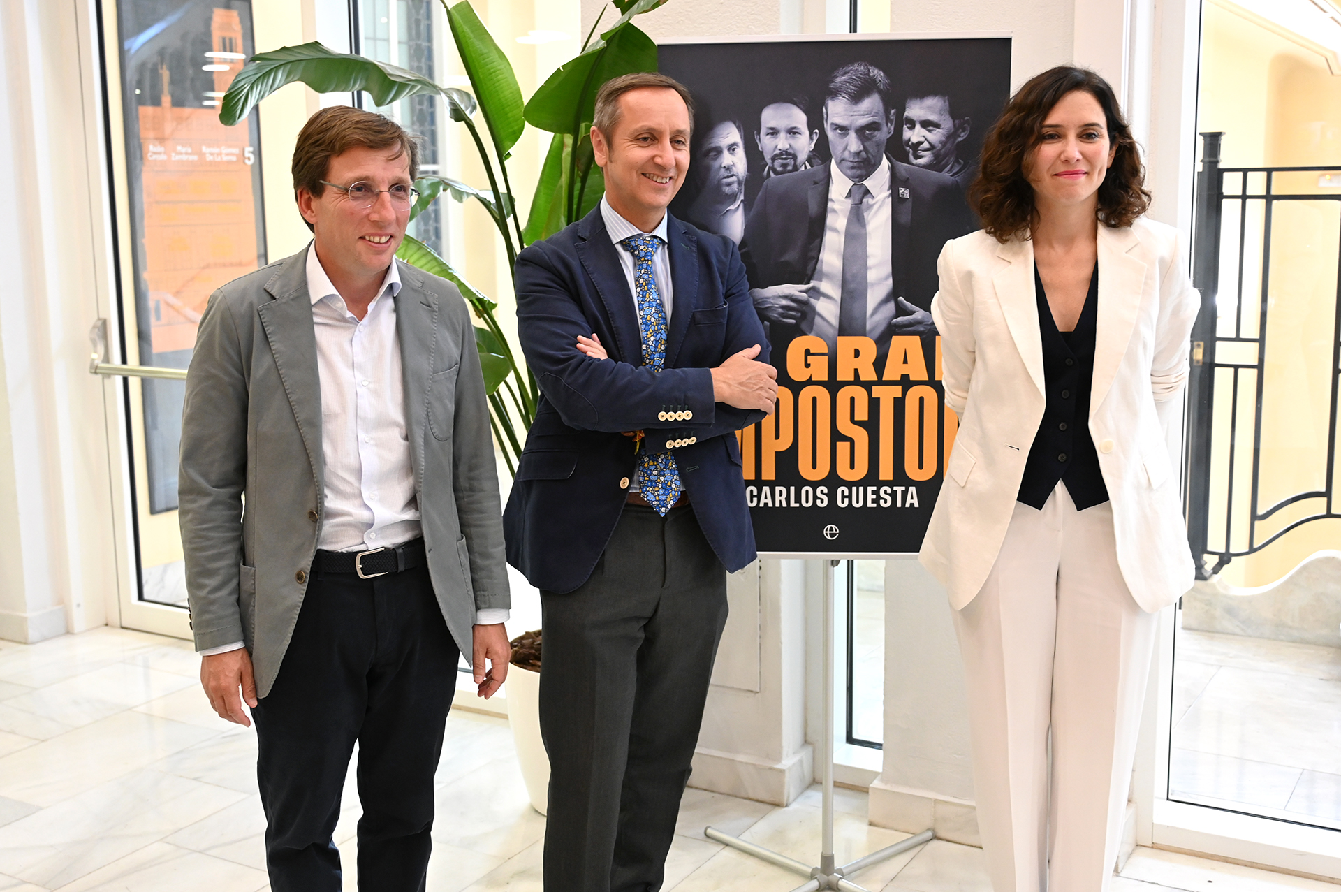 El primer libro de Carlos Cuesta ha sido prestado por el periodista y Director Adjunto del Grupo Libertad Digital, junto con Dieter Brandau y acompañado de Isabel Díaz Ayuso y José Luis Martínez Almeida, entre otras personalidades