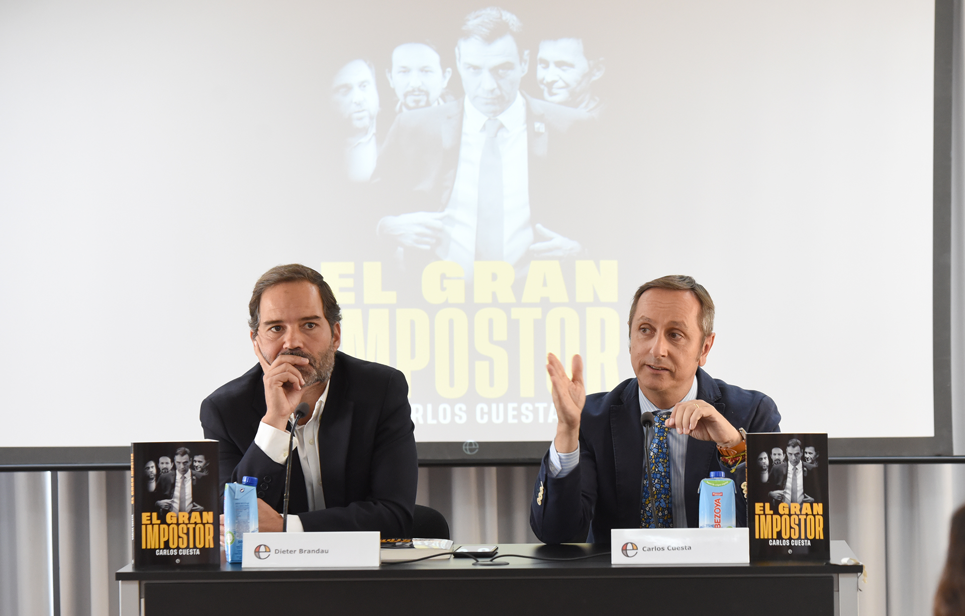 El primer libro de Carlos Cuesta ha sido prestado por el periodista y Director Adjunto del Grupo Libertad Digital, junto con Dieter Brandau y acompañado de Isabel Díaz Ayuso y José Luis Martínez Almeida, entre otras personalidades. Se trata de una incisiva crónica del socialismo de los últimos veinte años, desgranando el turbio paso de Pedro Sánchez por Caja Madrid, su tesis falsa, sus maniobras para hacerse con el poder en el PSOE, sus enchufes familiares, las alianzas marroquís de su esposa o el espionaje de su móvil.