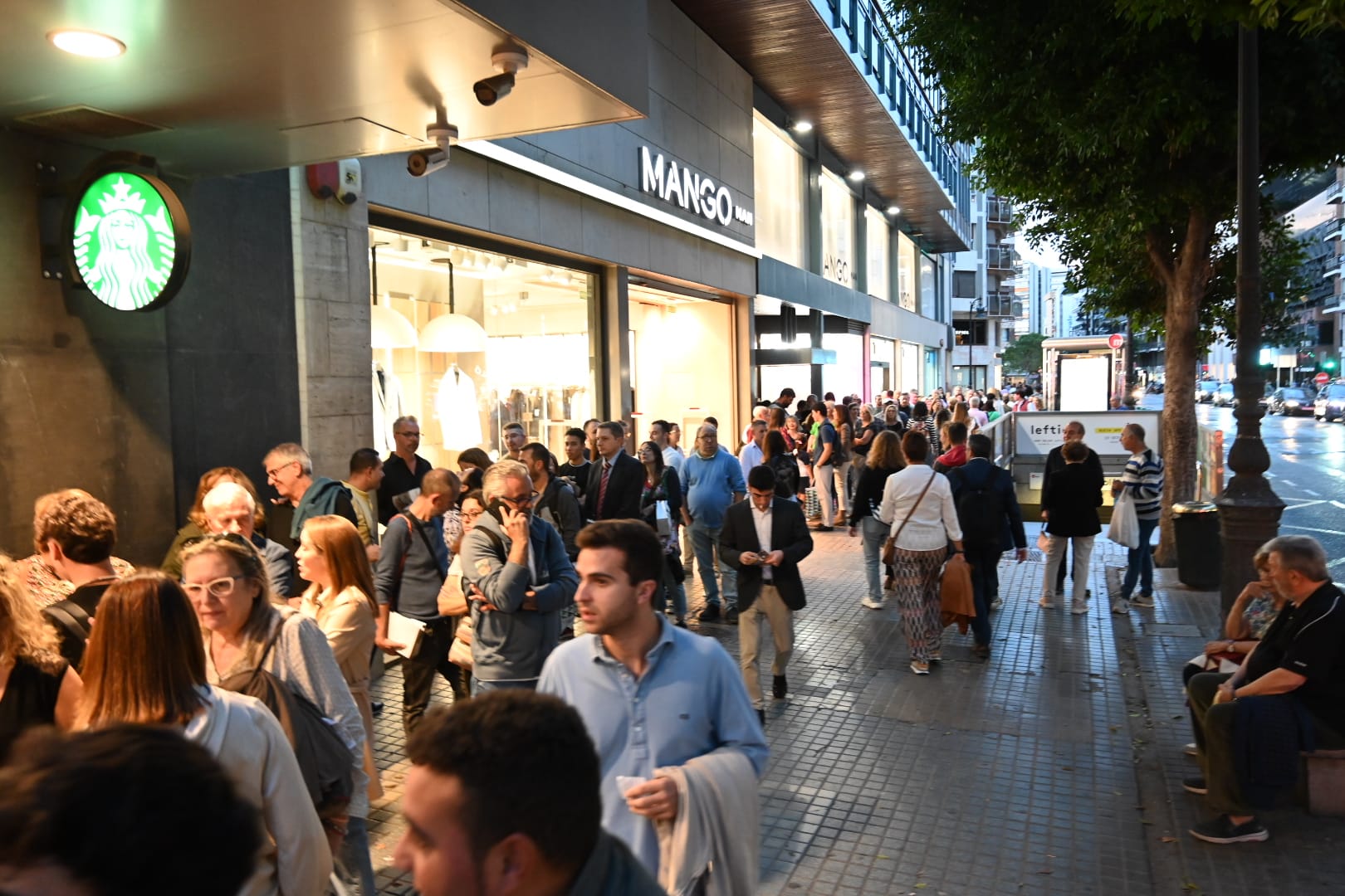 Desde las 19h los lectores de Federico Jiménez Losantos se han concentrado a las puertas de El Corte Inglés de Valencia para la firma de libros.