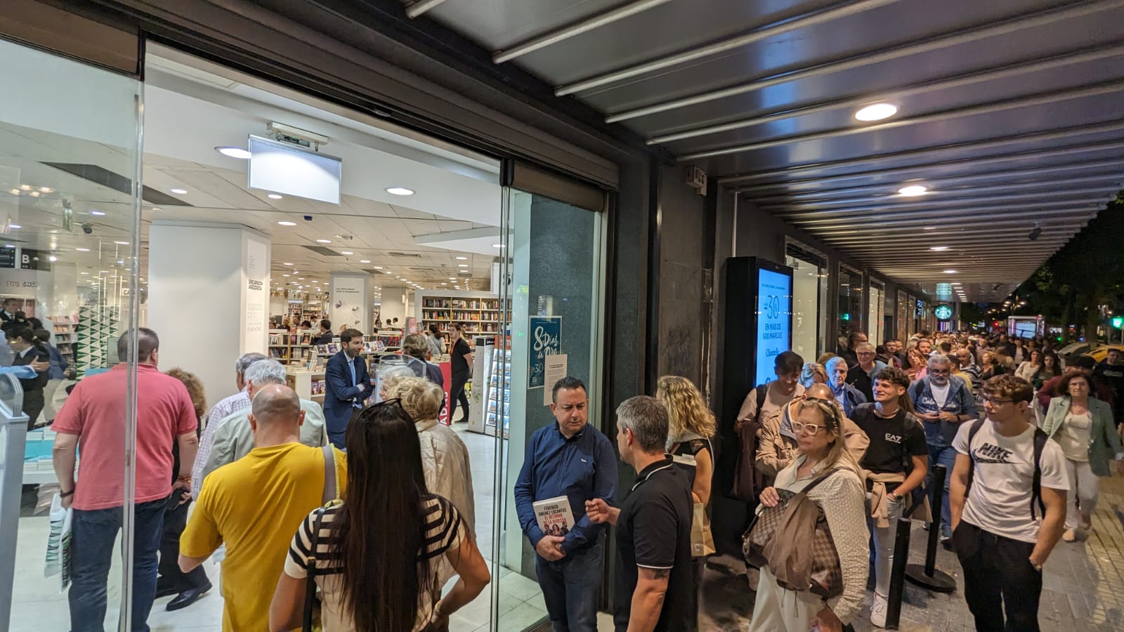 Como se aprecia en la foto, cientos de personas han esperado pacientemente a que Federico Jiménez Losantos les dedicara uno de sus libros.