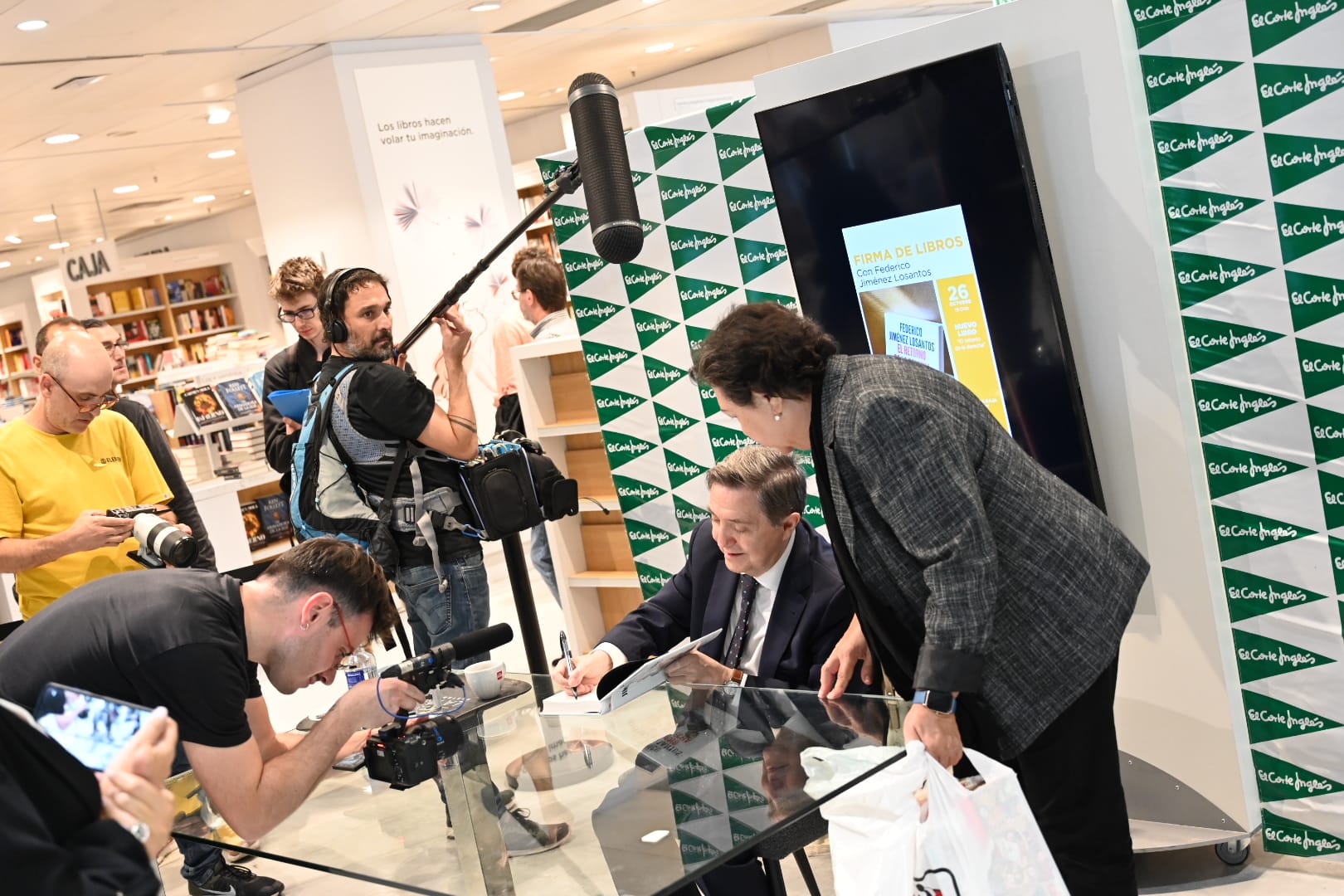Mientras Federico Jiménez Losantos firma uno de sus libros inmortalizan el momento.