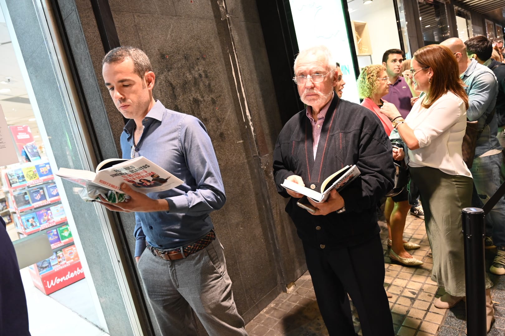 Cientos de personas hacen cola en El Corte Inglés de Valencia para que Federico Jiménez Losantos le firme alguno de sus libros.
