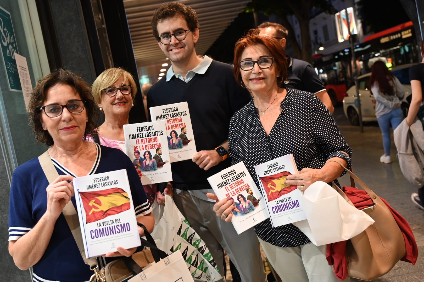 Un grupo de seguidores de Federico Jiménez Losantos posan con los ejemplares de 'La vuelta del Comunismo' y de 'El retorno de la derecha'.