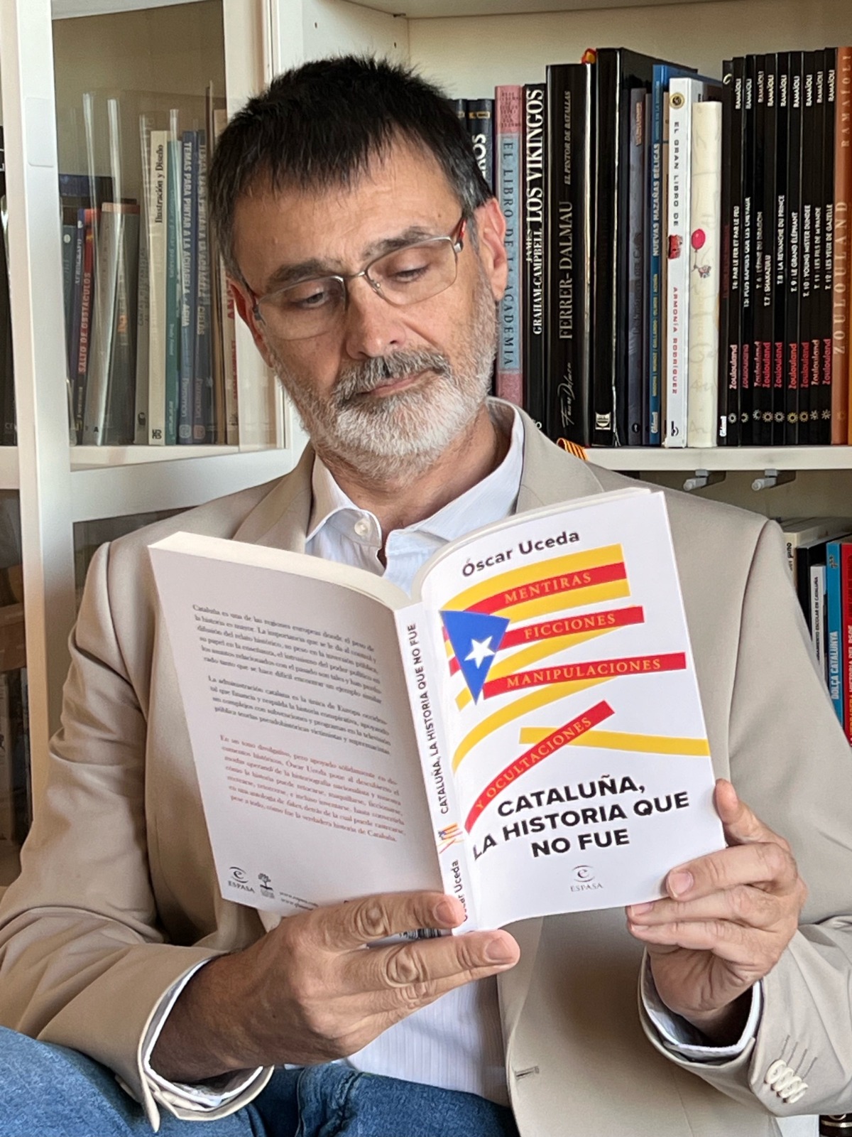 La contraportada del último libro de Óscar Uceda, presidente de la Associació d'Historiadors de Catalunya Antoni de Capmany (AHCAC), lo resume perfectamente: "La administración catalana es la única de Europa occidental que financia y respalda la historia conspirativa, apoyando sin complejos con subvenciones y programas en la televisión pública teorías pseudohistóricas victimistas y supremacistas. En un tono divulgativo, pero apoyado sólidamente en documentos históricos, el autor pone al descubierto el modus operandi de la historiografía nacionalista y muestra cómo la historia puede retocarse, maquillarse, ficcionarse, recrearse, retorcerse e incluso inventarse, hasta convertirla en una antología de fakes detrás de la cual puede rastrearse, pese a todo, cómo fue la verdadera historia de Cataluña". El libro se llama Cataluña, la historia que no fue (Espasa). Hablamos con él: