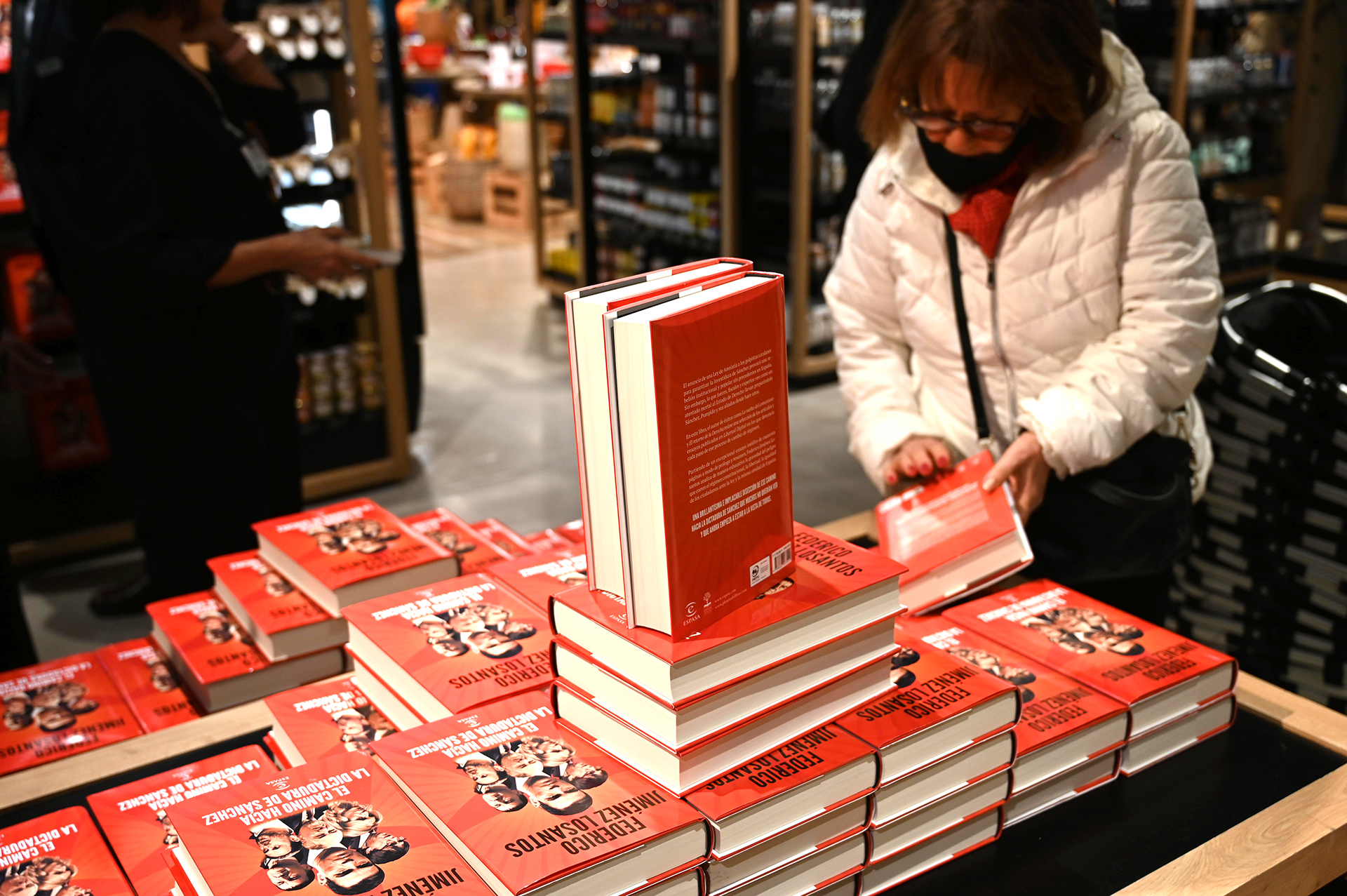 Una cliente de El Corte Inglés de Goya, en Madrid, lee la contraportada del último libro de Federico Jiménez Losantos, El camino hacia la dictadura de Sánchez.