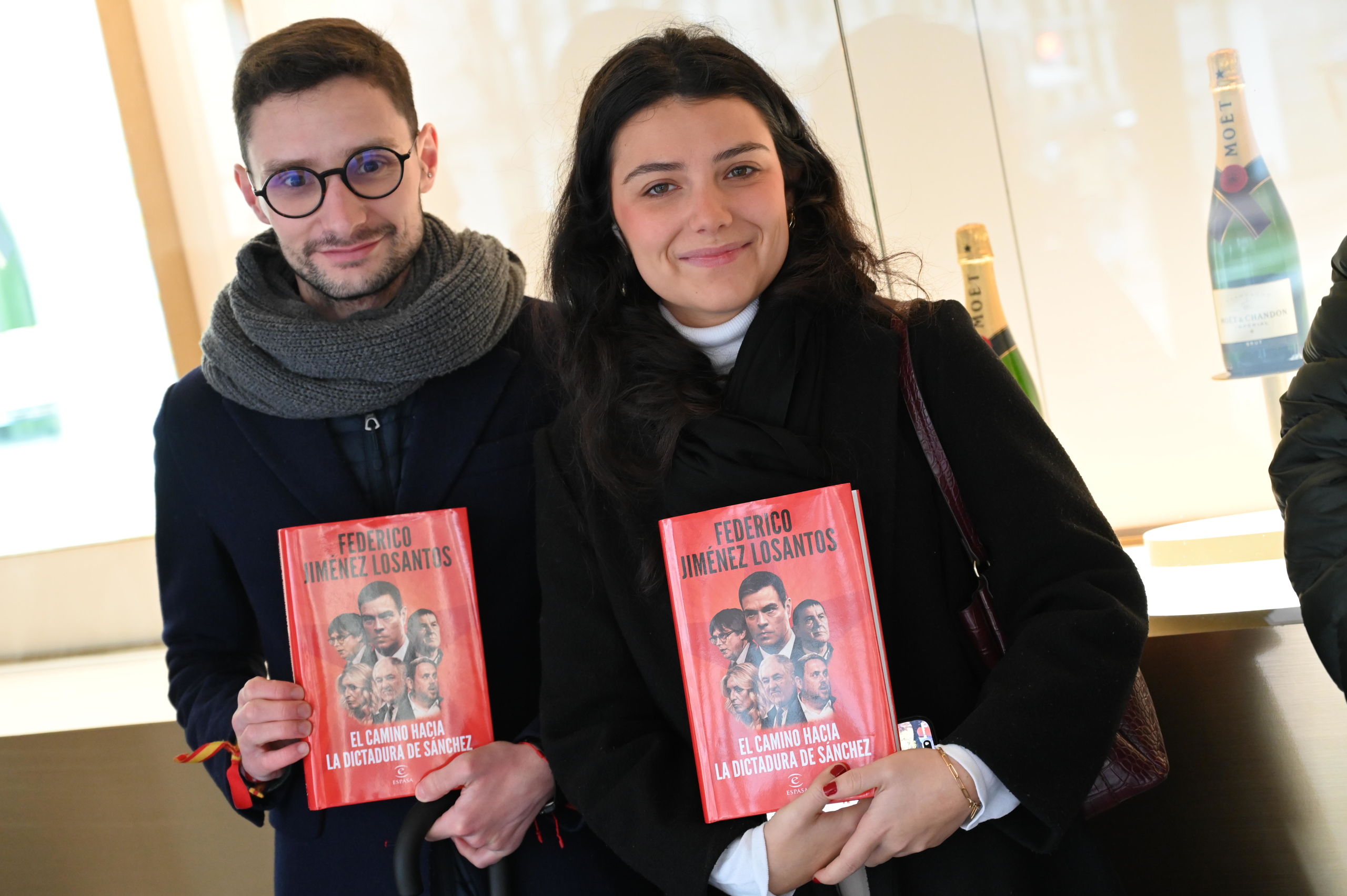 Durante más de una hora Federico Jiménez Losantos ha firmado ejemplares de su nuevo libro, El camino hacia la dictadura de Sánchez, en El Corte Inglés de Goya, en Madrid. En la imagen, una pareja posa con sendos ejemplares del libro.