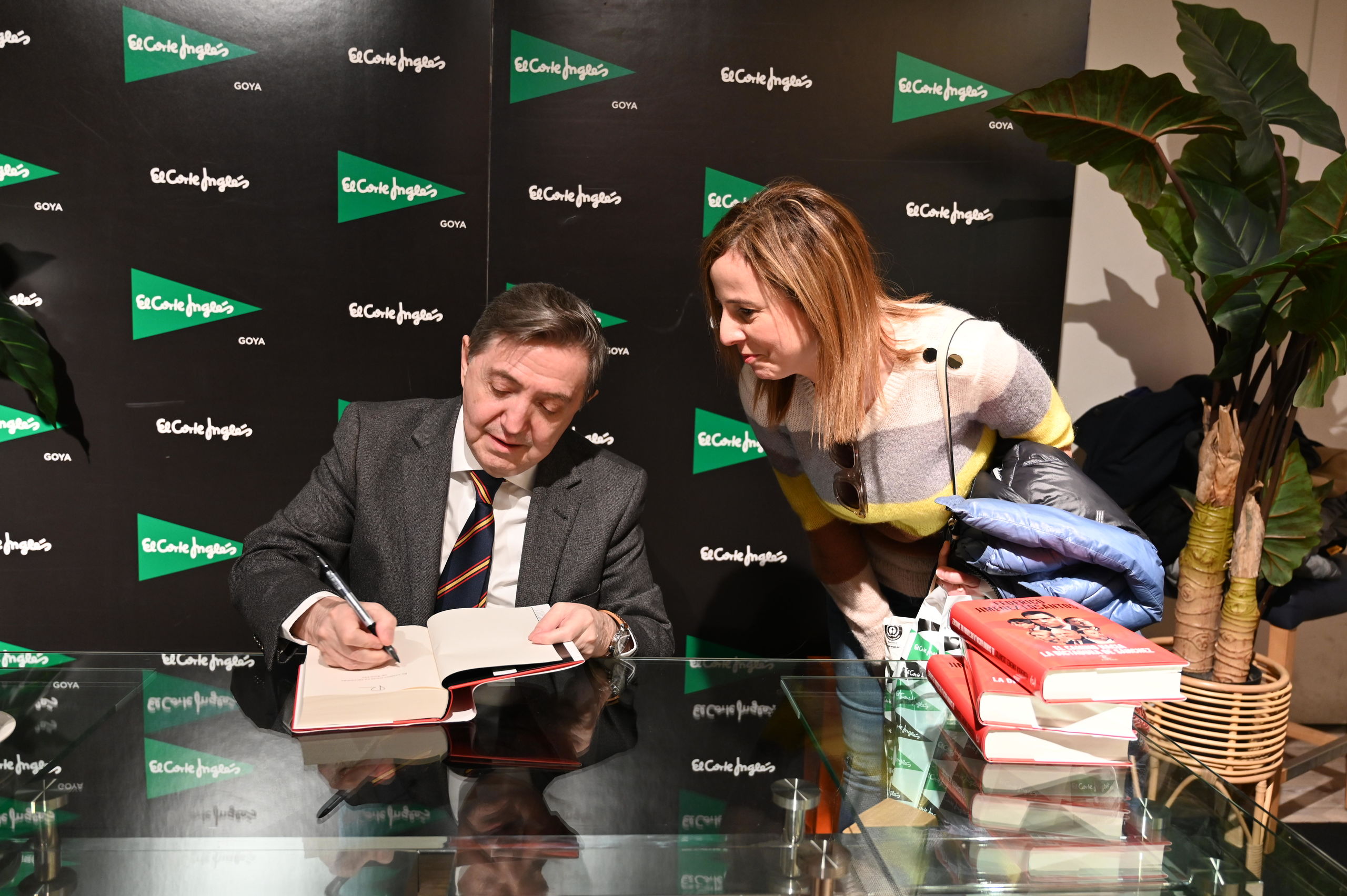 Momento en el que Federico Jiménez Losantos firma su nuevo libro a un lector en El Corte Inglés de Goya, en Madrid.