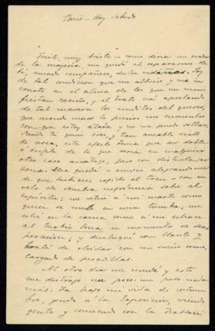 El lector puede asomarse al inicio de este romance. En una de estas epístolas, la escritora se dirige al "ilustre maestro y amigo", contándole sus impresiones desde París: "Considero esta vida más sana para el cerebro que la de Madrid, donde se tropieza siempre a la misma gente y se renueva poco la atmósfera intelectual. Desde que he llegado, sentí que recobraba el perdido aliento y me puse a corregir, limar y rehacer mi casi abandonada novela. Ya está muy cerca de salir para Barcelona, donde la editará la casa Cortezo. No tengo resolución para lanzarme a editar yo misma". Posteriores cartas ya hablan de "miquiño mio", con una complicidad más que evidente: "Cariño: ya estoy rabiando porque vengas, y los actores lo mismo. Les parece mentira que les hagas tan pronto el drama, y sobre todo que se lo hagas".