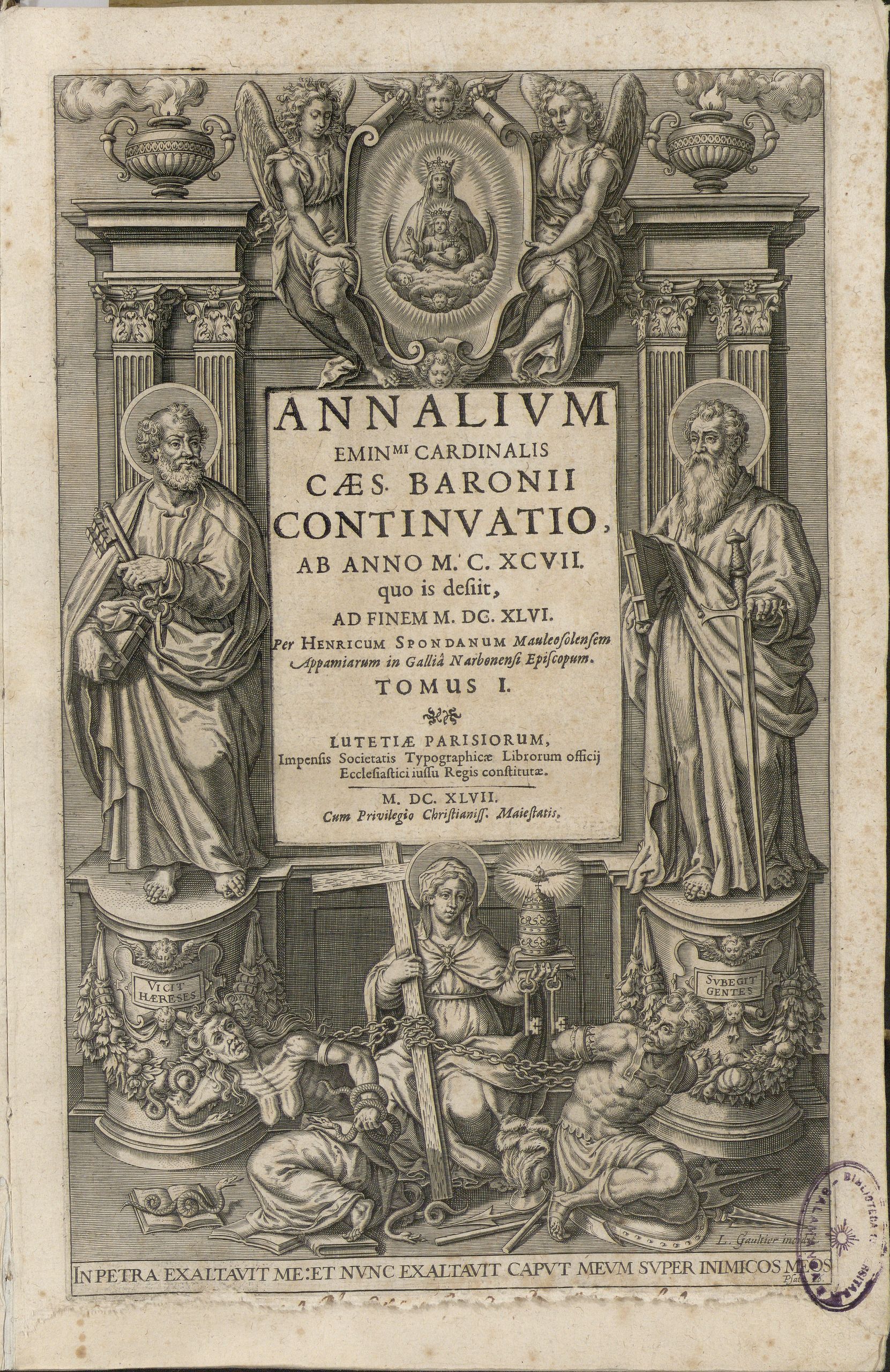 Los Annales Ecclesiastici del cardenal Cesare Baronio (1538-1607) relatan la historia de la Iglesia desde el nacimiento de Cristo hasta el año 1198. La obra se publicó en doce volúmenes entre 1588 y 1607 y se ideó, entre otros proyectos de la curia romana, como la respuesta oficial del catolicismo a la interpretación luterana de la historia de la Iglesia.