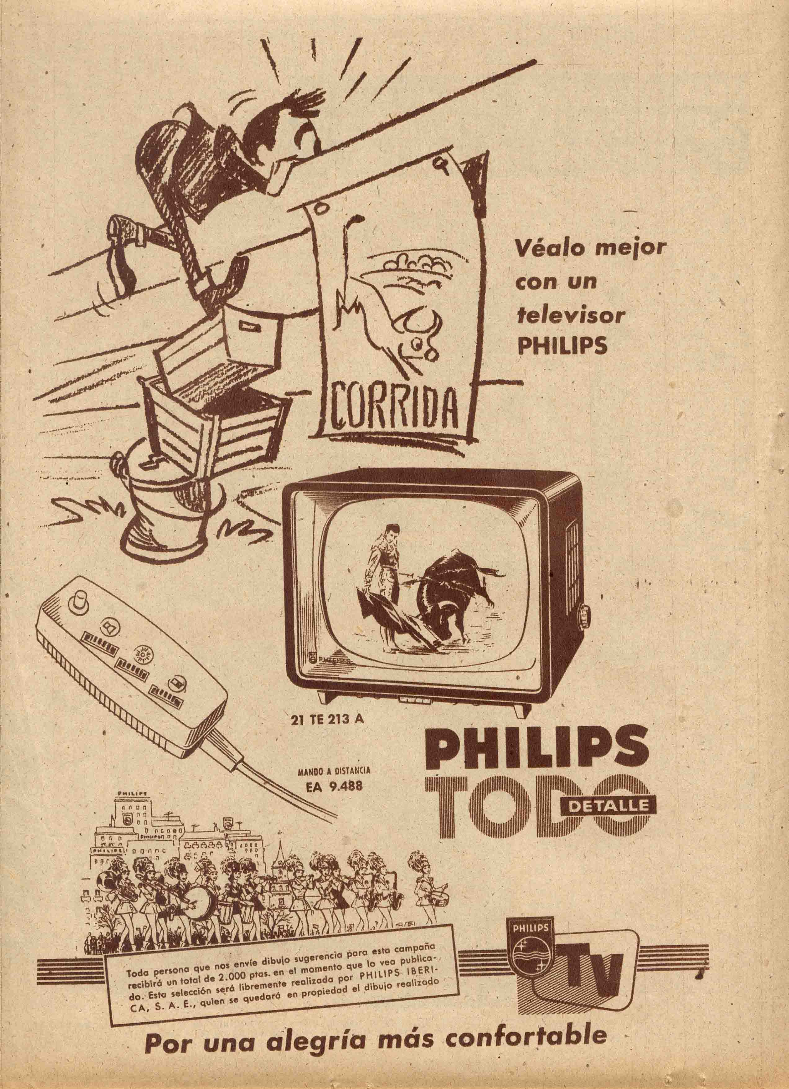 Philips, la empresa holandesa de electrodomésticos más popular en la España de los años 60, introdujo el mando a distancia remoto (con cable) en 1961. No tuvo el éxito esperado y hubo de esperar a la popularización del control remoto inalámbrico de Eugene Polley, el "flash matic", en los años 70.