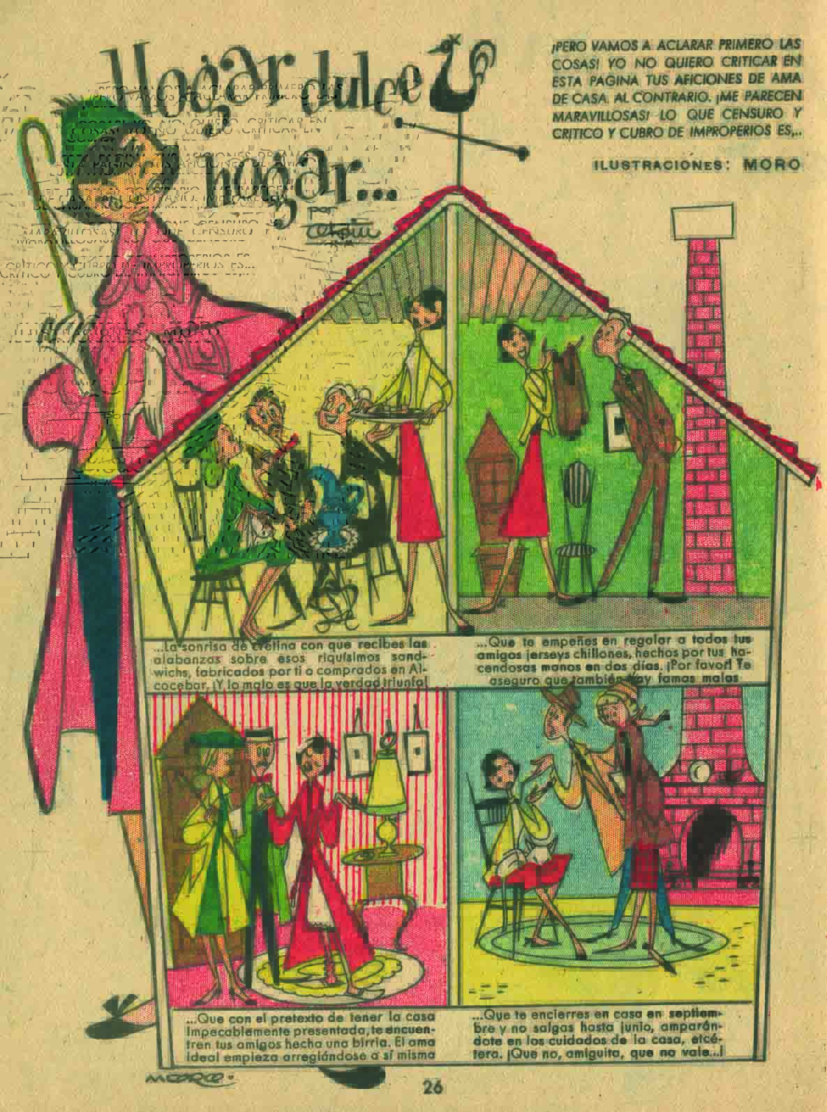 La casa moderna según José Luis Moro. Singular viñeta, precedente de "13 Rue del Percebe", de Ibáñez, publicada en la revista "Chicas" nº 133, en 1953.