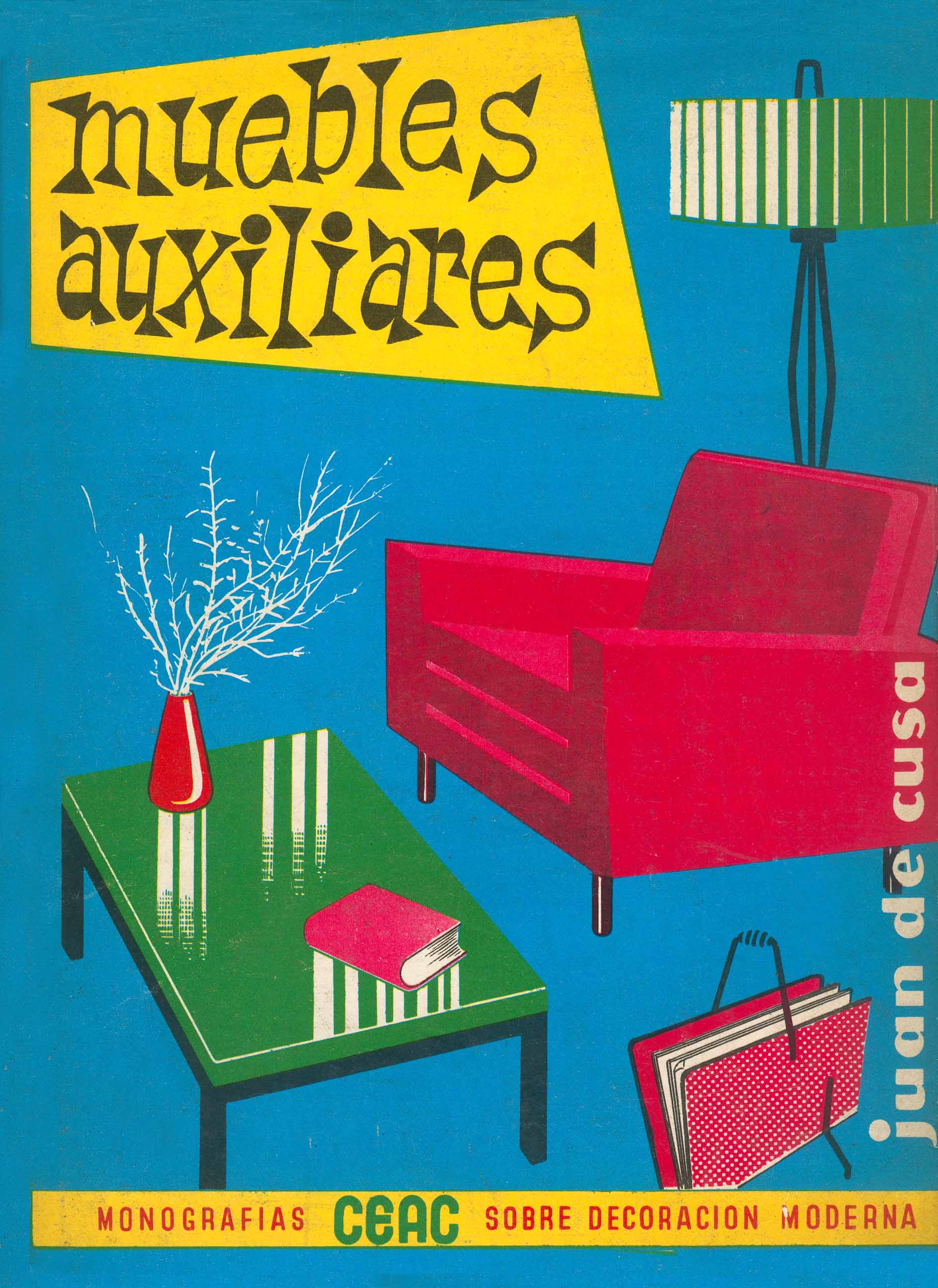 CEAC publicó numerosas monografías sobre decoración moderna. Este de "Muebles auxiliares" destaca por la estridencia pop de sus colores (1961).