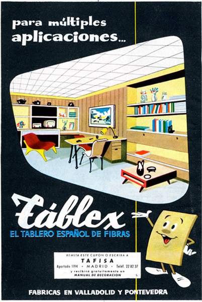 Anuncio pop de José Luis Moro para los tableros "Táblex", de 1960, con una de sus populares mascotas.