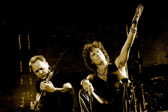 España y Latinoamérica, así como Alemania, Bélgica, Suiza, Francia o Italia abrazaron el rock de esta banda radicada en Zaragoza, formada por Enrique Bunbury (voz), Juan Valdivia (guitarra solista), Joaquín Cardiel (bajo) y Pedro Andreu (batería). Su reencuentro en 2007 reconcilió a una de las mejores bandas de toda la historia musical española. Trabajos como Senderos de traición, El espíritu del vino o Avalancha o verdaderos himnos como "La herida", "Oración", "Entre dos tierras" o "La sirena varada" así lo demuestran. En la imagen, Bunbury y Valdivia