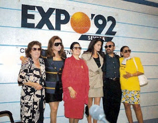 Ante el logo de la Expo, las artistas posan y nos recuerdan cómo era la moda de la época, al menos entre nuestras cantantes más raciales. Con gafas de sol pantalla total.