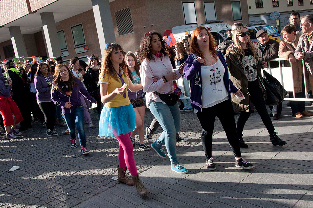 Un grupo de amigas se dirigen a la entrada del Palacio de Deportes donde se iba a celebrar el concierto de Justin Bieber