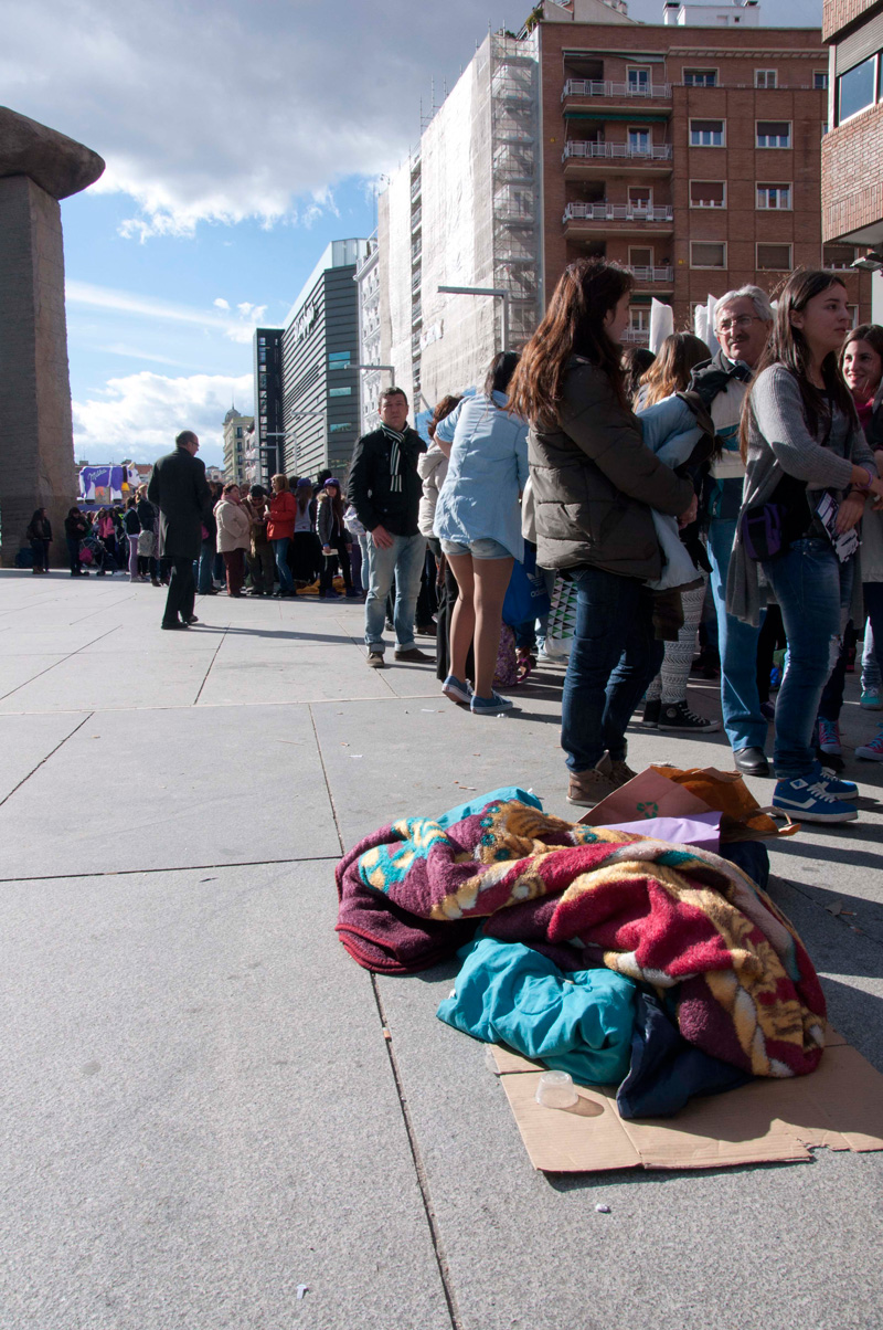 Los restos de lo antes fue un campamento improvisado de sacos de dormir y mantas, para poder tener el mejor sitio en la cola