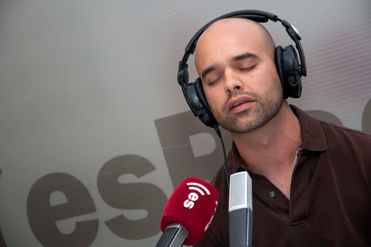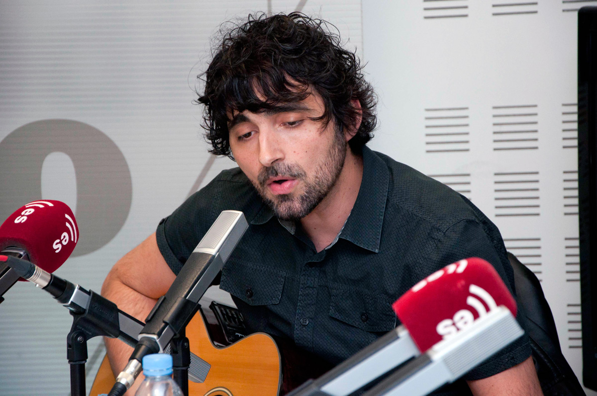 Daniel Cerdeño, la voz de Autoban, interpretando una canción durante la entrevista