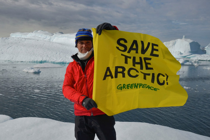 Alejandro Sanz portaba una pancarta de dos metros, que desplegó, con el lema "Salva el Ártico". Una llamada de atención para demostrar los efectos del cambio climático y las amenazas que se ciernen sobre este territorio. La organización Greenpeace, a la que se ha vinculado el cantante de Corazón partío, mantiene que, en los últimos quince años, tal cambio climático ha provocado una regresión del glaciar de alrededor de kilómetro y medio.