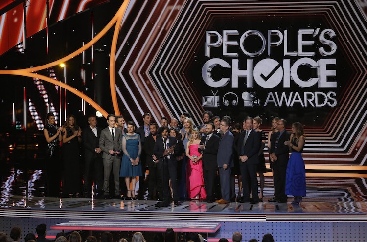 Los protagonistas de The Big Bang Theory, al completo, tras recoger los premios concedidos por los espectadores.