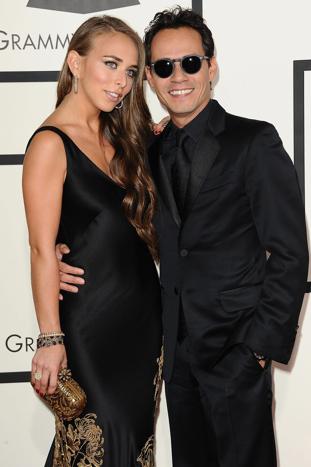 Mark Anthony y su pareja Chloe Green en la alfombra roja. Anthony fue una de las principales presencias latinas de la gala, y uno de los que entregaron el premio a uno de los triunfadores de la jornada, Bruno Mars.