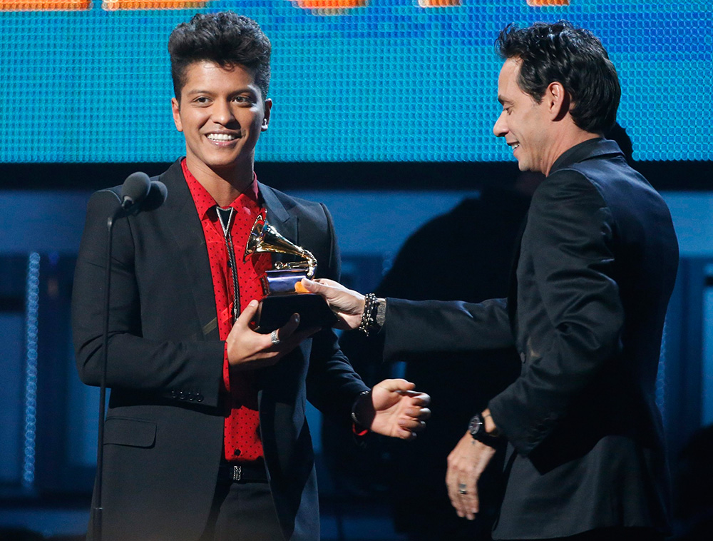 Bruno Mars, hijo de puertorriqueño y filipina, ganó el gramófono dorado de mejor álbum de pop vocal con su Unorthodox Jukebox, Draco Rosa, ausente por su tratamiento de cáncer, triunfó con Vida en la categoría de mejor álbum pop latino y La Santa Cecilia hizo lo mismo como mejor álbum de rock, música alternativa o urbana con "Treinta Días".