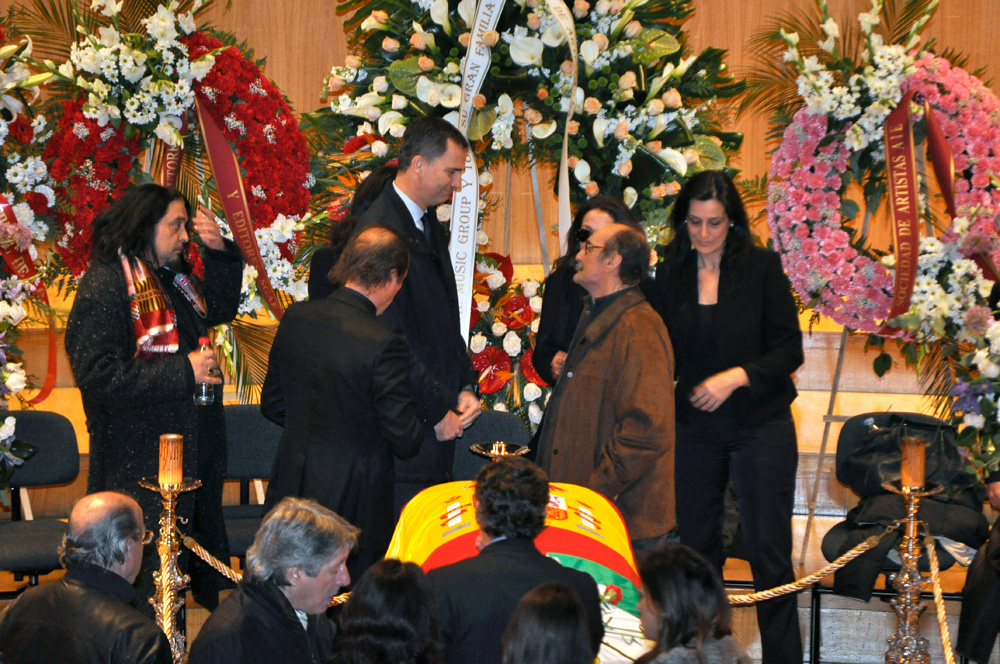 Un momento con la familia de Paco de Lucía en presencia del féretro con los restos mortales.