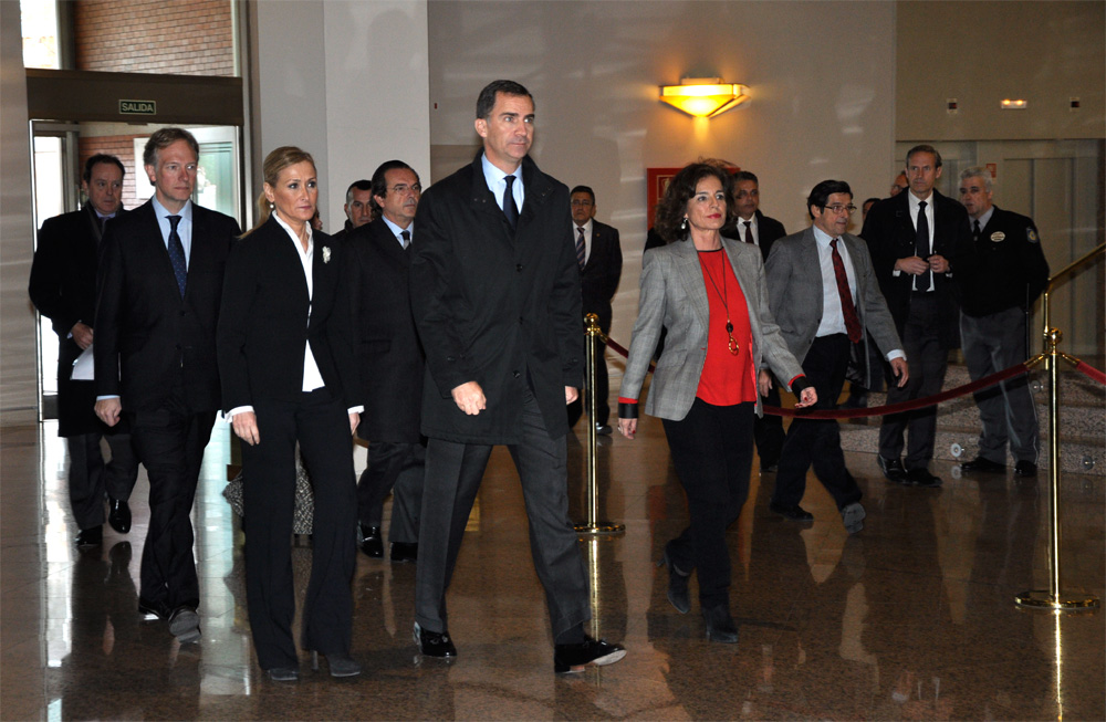 El Principe Felipe, acompañado por la Delegada del Gobierno en Madrid, Cristina Cifuentes y por la Alcaldesa de Madrid, Ana Botella.