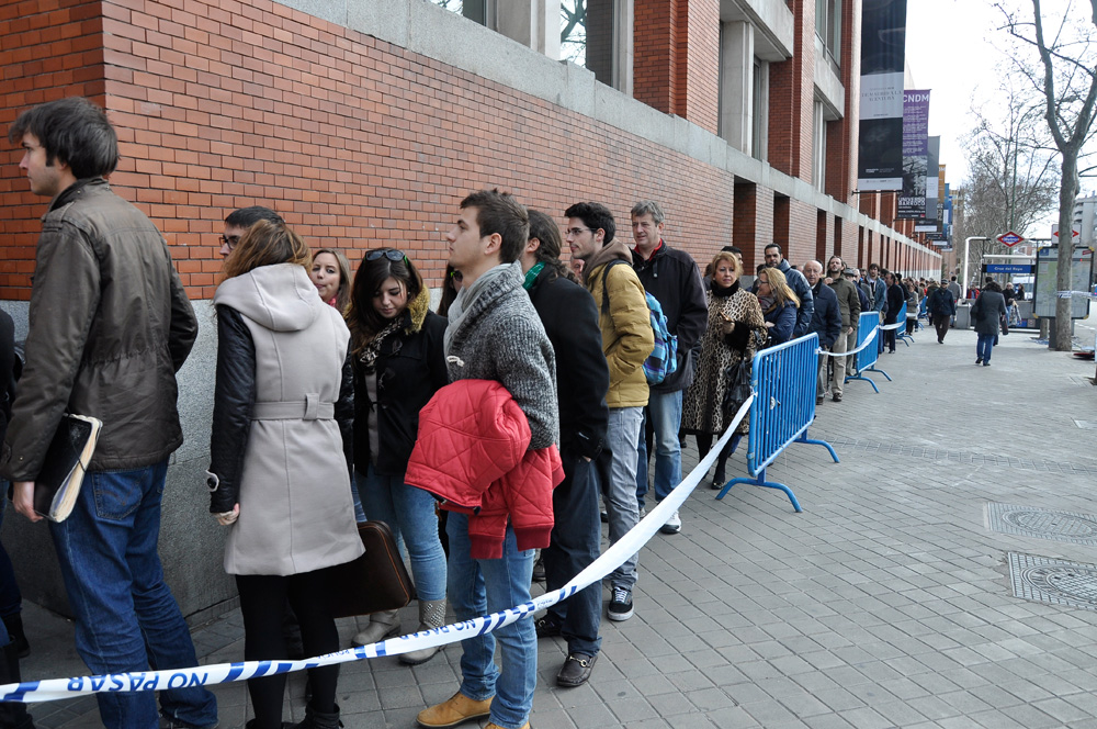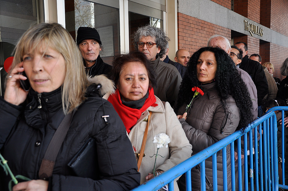 La cola para poder acceder a la capilla ardiente de Paco de Lucía daba la vuelta al edificio del Auditorio Nacional.