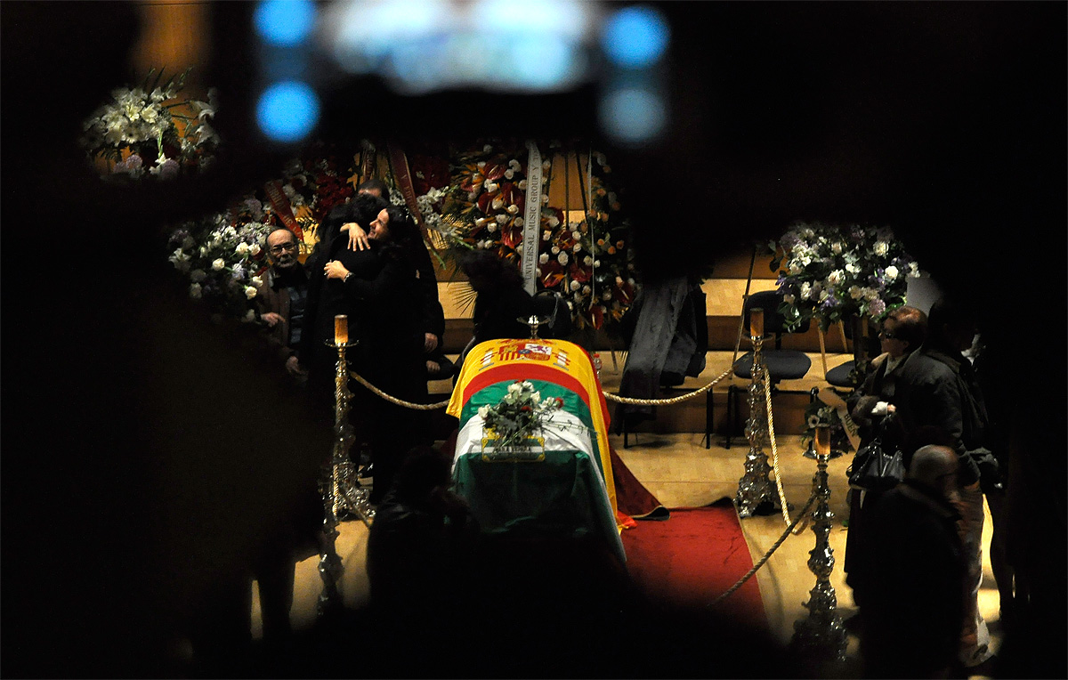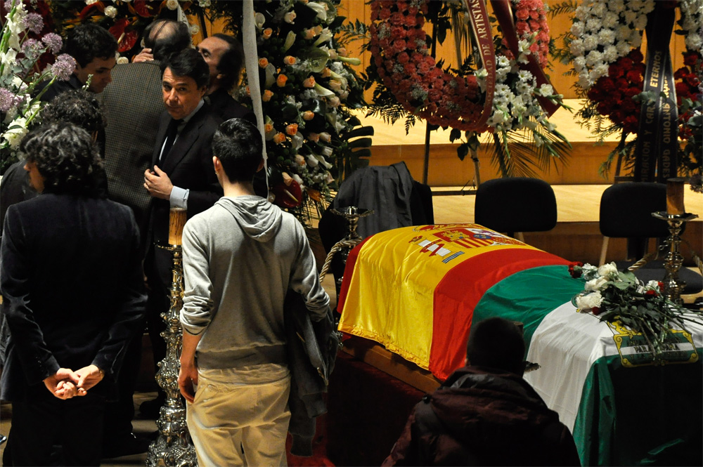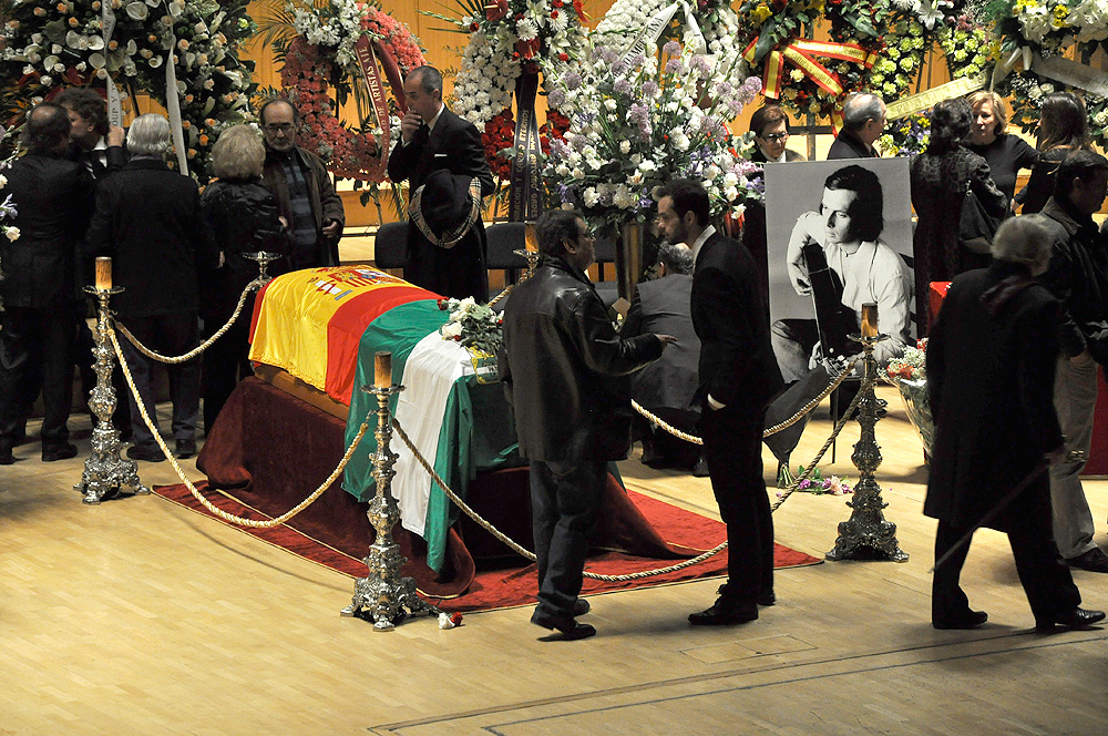 El féretro con los restos mortales del artista con las banderas de España y Andalucía.