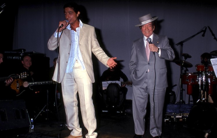 Juanito Valderrama llevaba casado casi veinte años con María Vega, que le dio tres hijos, cuando se enamoró hasta las cachas de una joven promesa del cante, Lolita Caballero, a la que él bautizó artísticamente como Dolores Abril. Se fue a vivir con ella a partir de 1954. Entonces no existía el divorcio sino "el ahí te quedas". Pero el creador de “El emigrante” se portó al menos justo y generoso con su primera mujer en el aspecto económico, dejándole cuanto tenía en propiedades, joyas y dinero, patrimonio valorado entonces en treinta millones de pesetas. Una fortuna. Y empezó de cero junto a la que sería ya “la mujer de su vida”. En la imagen, Juan Valderrama y su padre Juanito, en 2003.