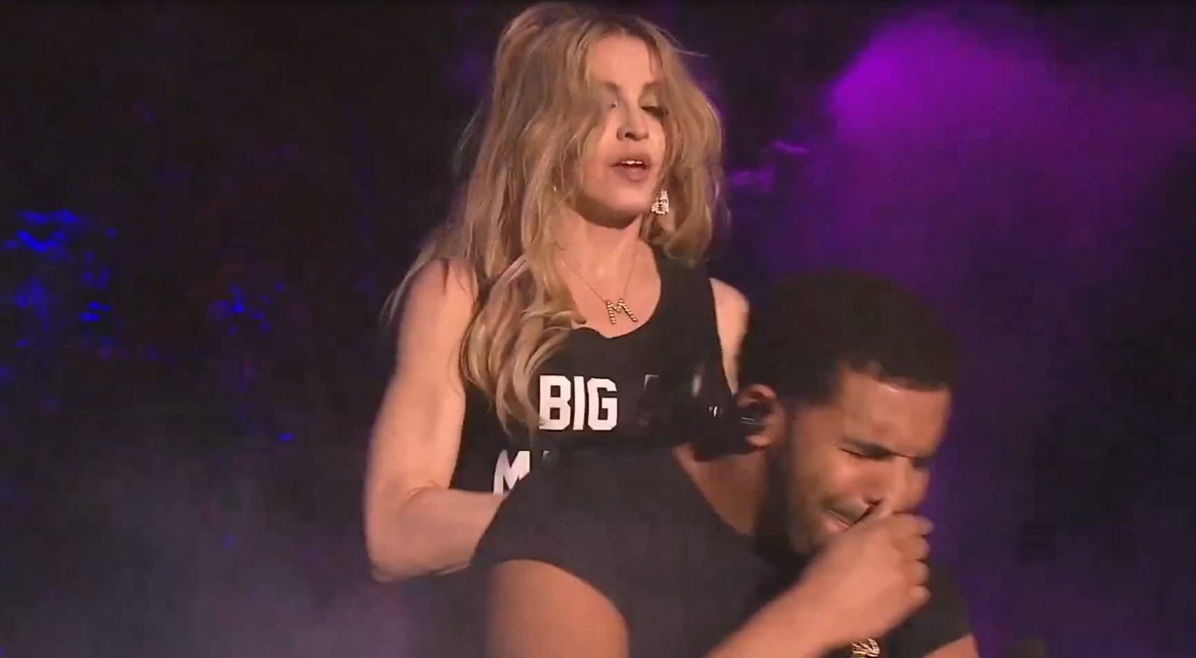 El cantante Drake mostró una verdadera cara de asco después de ser besado por Madonna durante su actuación en el festival de Coachella 2015.