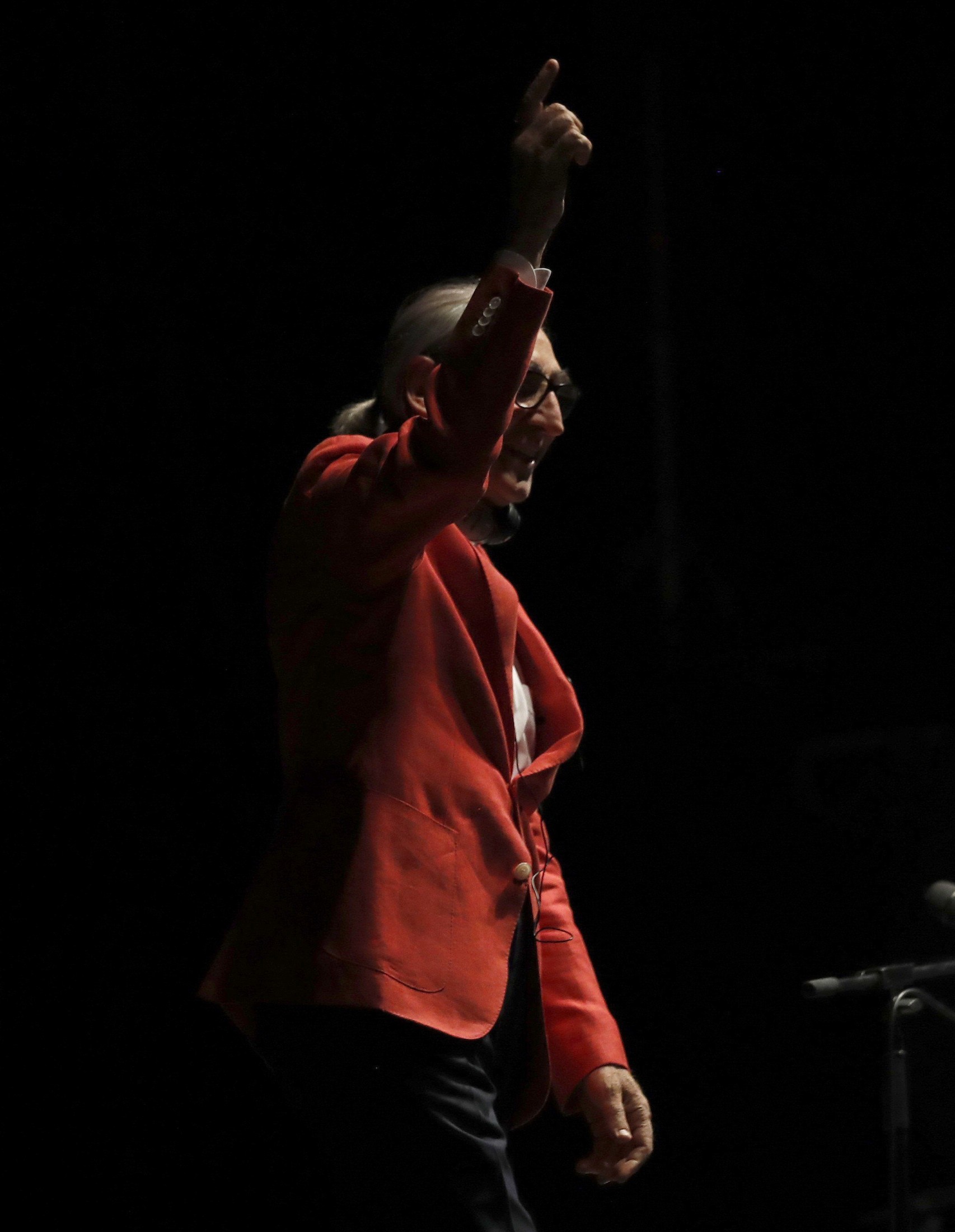 Ataviado con una americana roja –lo dicho: es un dandy–, Battiato salió con un enérgico "¡Benvenuti!" y se sentó sobre una plataforma cubierta con una alfombra persa. Su concierto arrancó solemne, sosegado, quizá denso. Empezó con "Stati di gioia", anunciando que ha descubierto, por casualidad, el estado que conduce a la alegría. Continuó con "Le sacre sinfonie del tempo", "Secondo imbrunire" y "Fornicazione", mas no fue hasta "No time no space" cuando el respetable se empezó a calentar. Embrujó con "Povera patria", aplaudida entre versos –"Entre los gobernantes, ¡cuántos perfectos e inútiles bufones!"–, y con la hermosísima "L’animale". Tras interpretar dos versiones –"Te lo lego negli occhi", de Sergio Endrigo, y "La canzone dei vecchi amanti", de Jacques Brel–, el siciliano, perdón por el tópico, tiró de artillería, enlazando "La stagione dell’amore", "Gli uccelli" o "Prospettiva Nevski". "¡Vamos a bailar!", exclamó, y se puso de pie por primera vez para cantar "La cura".