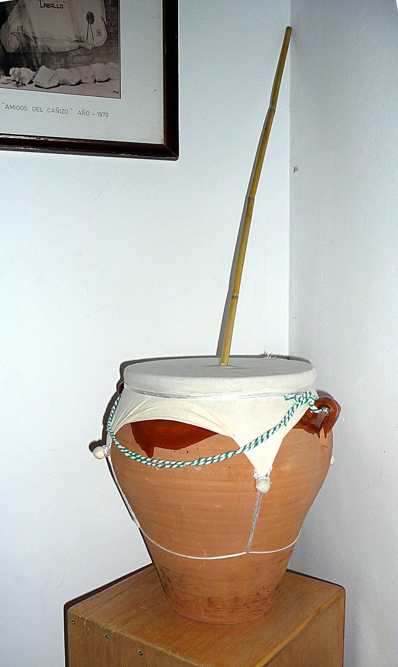 Por arriba, está clausurada por una piel tirante (desde liebre a cerdo) que aprisiona en el centro a un carrizo, una especie de fina caña ribereña, que tiene todo un arte de recolección y secado. Frotando arriba y abajo el carrizo con las manos humedecidas en agua, se obtiene un sonido uniforme, monótono y no del gusto de todo el mundo.